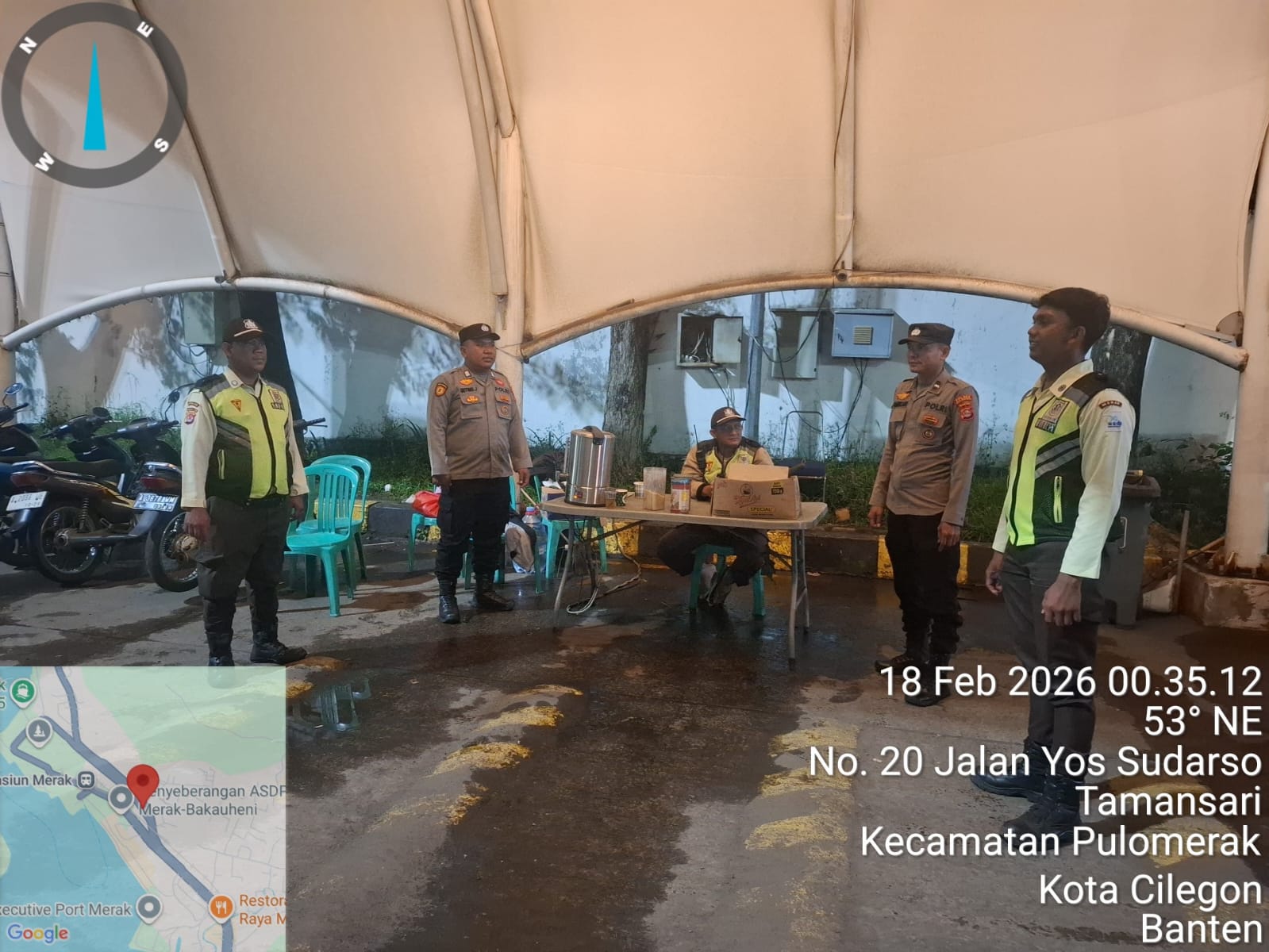 Cilegon - Personil Polsek Kskp Merak Polres Cilegon melaksanakan patroli di kawasan pelabuhan merak memberikan rasa aman dan damai, Rabu (18/02/2026)