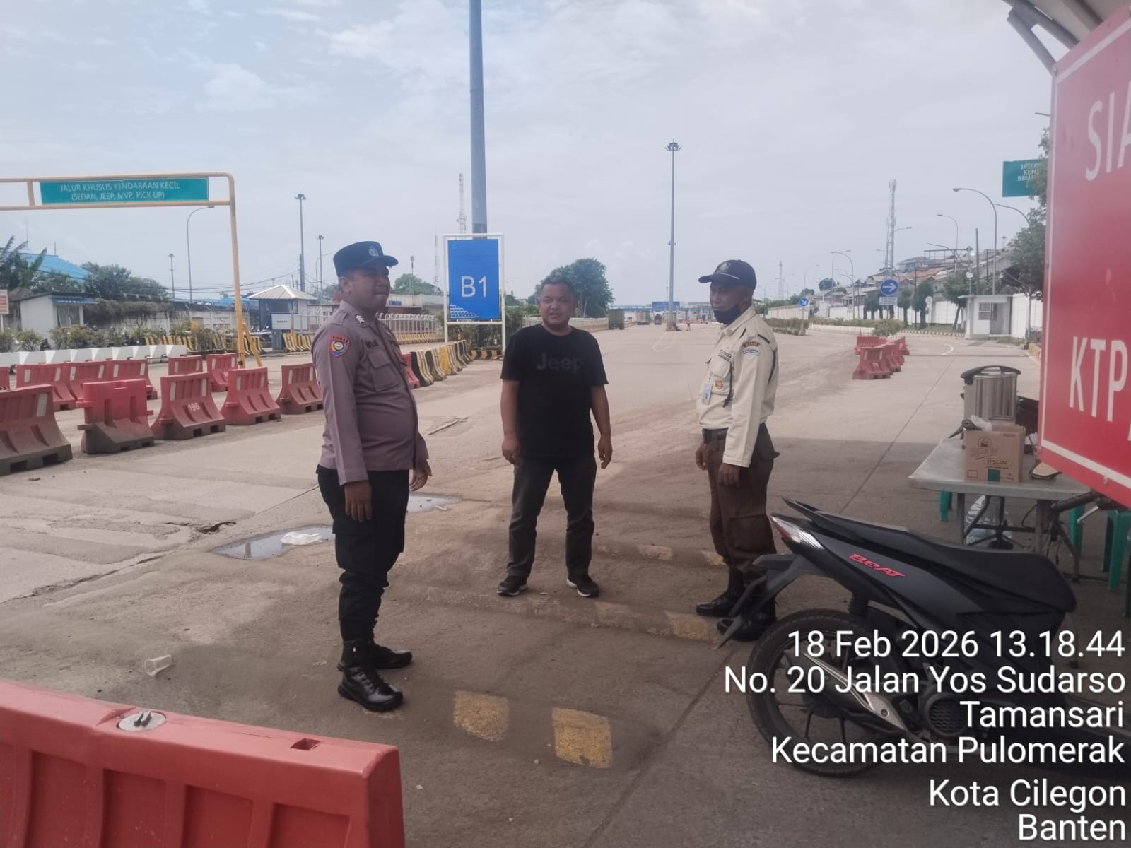 Cilegon - Personel Polsek Kskp Merak Polres Cilegon Polda Banten melaksanakan sambang dan patroli kawasan pelabuhan merak dalam rangka menjaga Harkamtibmas di Kawasan Pelabuhan Merak, Rabu (18/02/2026).