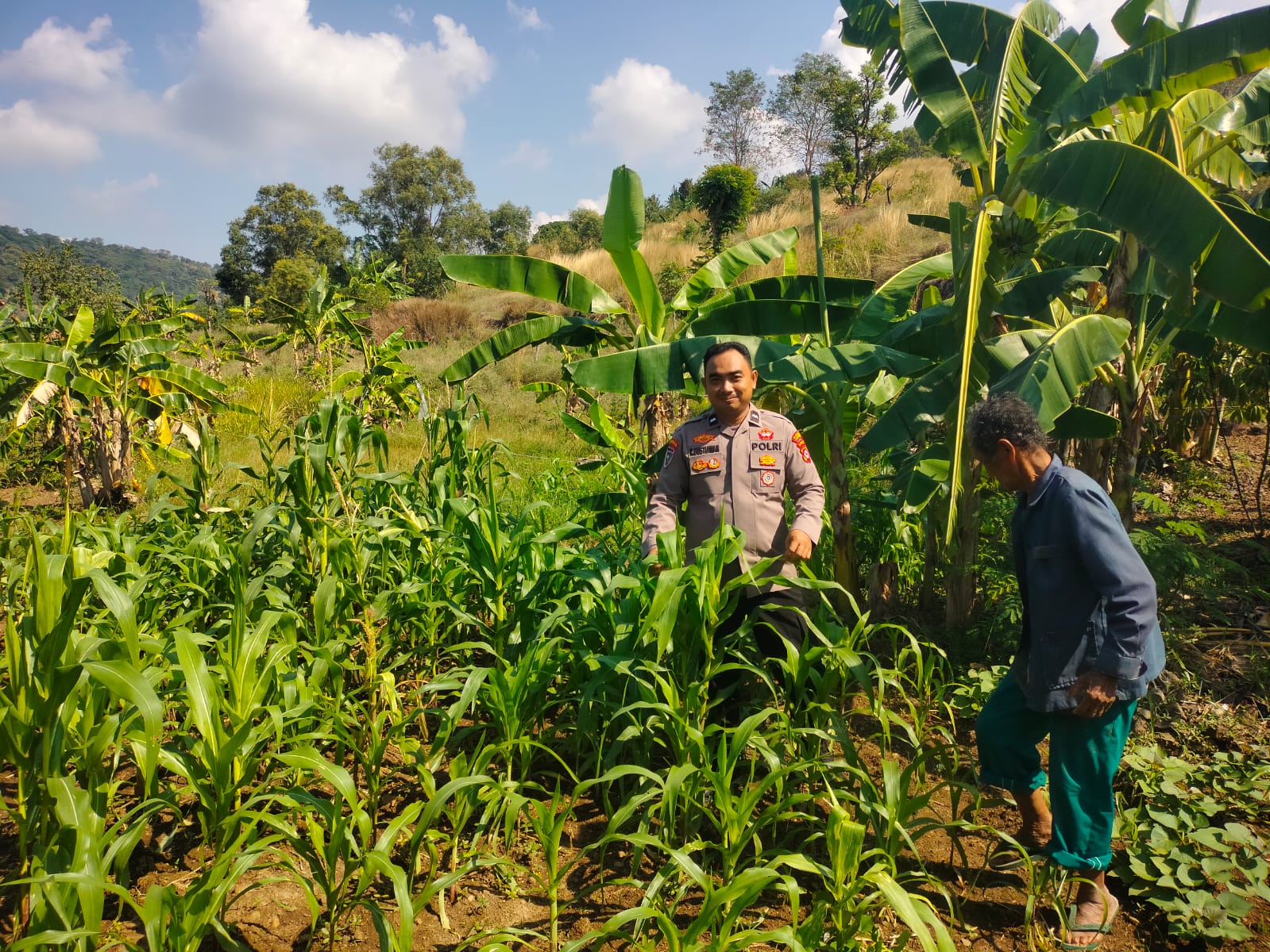 Pantau lahan jagung pok tani sinarjaya kecamatan.puloampel Ds. Salira oleh Bhabinkamtibmas Polsek Puloampel