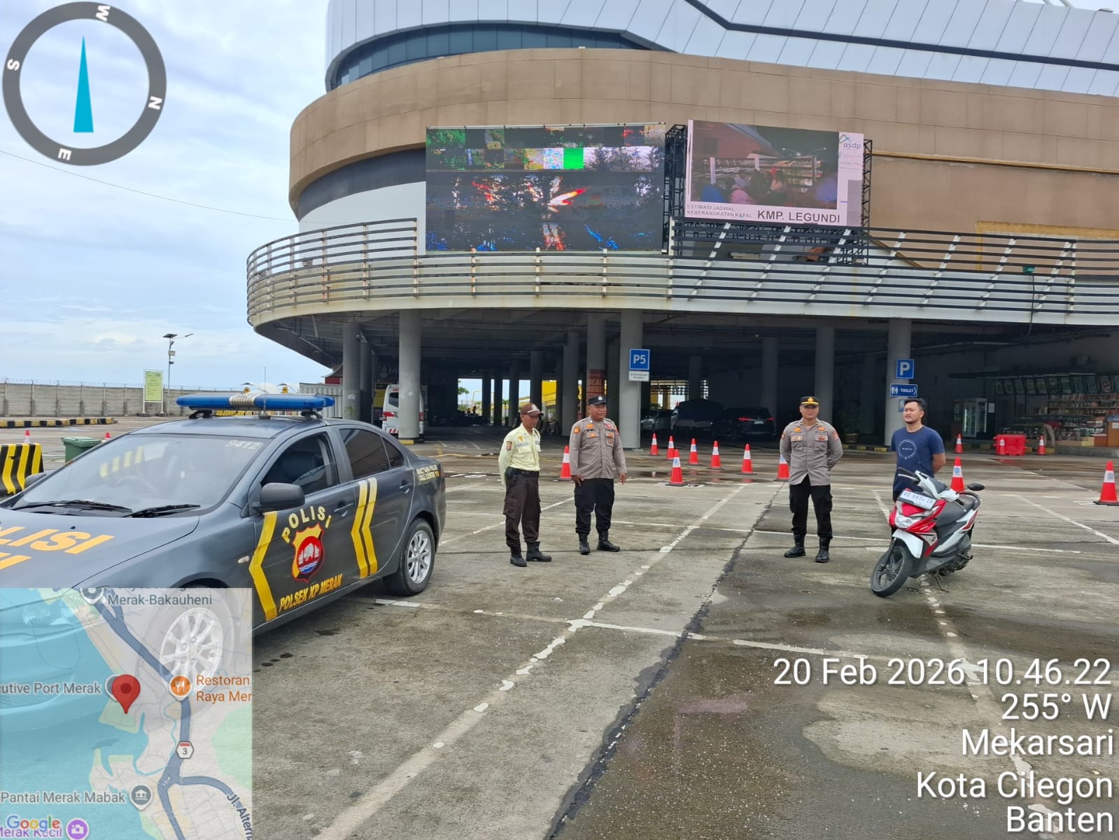 Cilegon - Personel Polsek Kskp Merak Polres Cilegon Polda Banten melaksanakan sambang dan patroli kawasan pelabuhan merak dalam rangka menjaga Harkamtibmas di Kawasan Pelabuhan Merak, Jumat (20/02/2026).