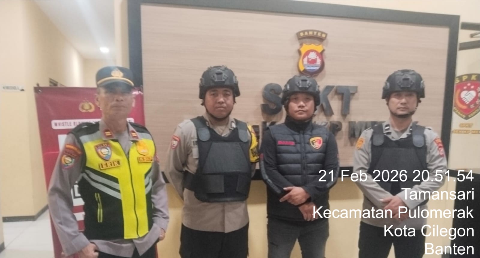 Cilegon - Personel piket jaga Polsek Kskp Merak Polres Cilgon Polda Banten melaksanakan siaga 1 Polsek pelaksanaan Sispam Mako oleh piket siaga dipimpin oleh Kspk Polsek Kskpy Merak Polres Cilegon Polda Banten, Sabtu (21/02/2026).