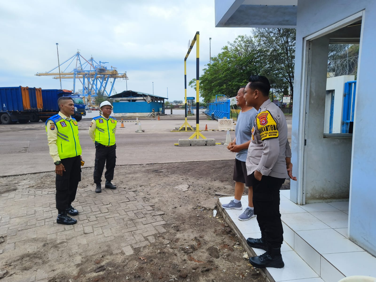 Kapolres Cilegon Polda Banten AKBP Martua Raja Taripar Laut Melalui Kapolsek Kskp Banten Polres Cilegon Polda Banten AKP Fredo Leonard Mengatakan Personil Polsek Kskp Banten Rutin menyambangi anggota Security dan memberikan himbauan agar para anggota Security bisa melaksanakan tugas menjaga keamanan di lingkungan Kawasan Pelabuhan.