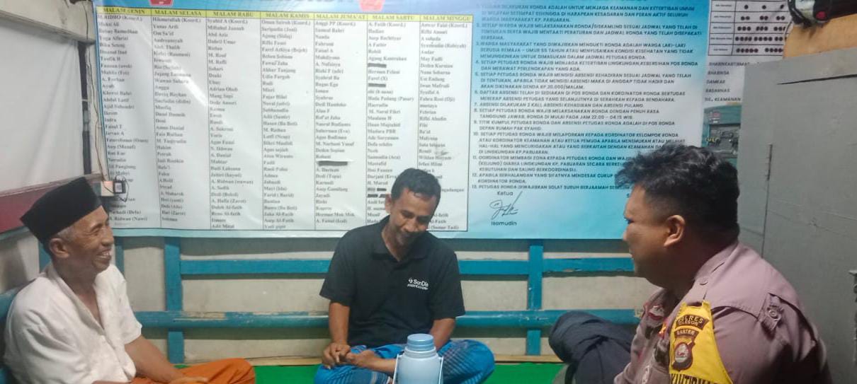 Cilegon - Personel Bhabinkamtibmas Polsek Anyar Polres Cilegon Polda Banten melaksanakan sambang Ronda Siskamling Dalam rangka menjaga Harkamtibmas dan Sebagai bentuk mendukung Program Quick Wins Presisi Polri, Senin (23/02).