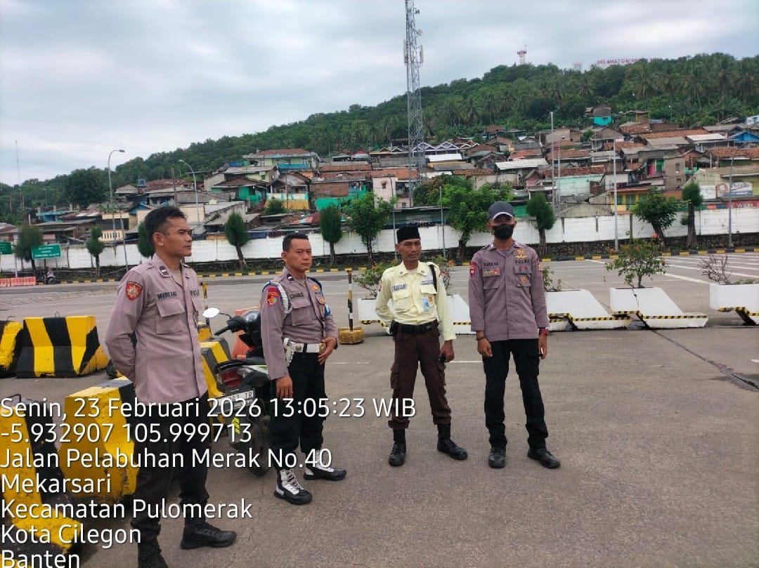 Personel Samapta KSKP Merak Polres Cilegon Intensifkan Patroli Dialogis di Kawasan Pelabuhan