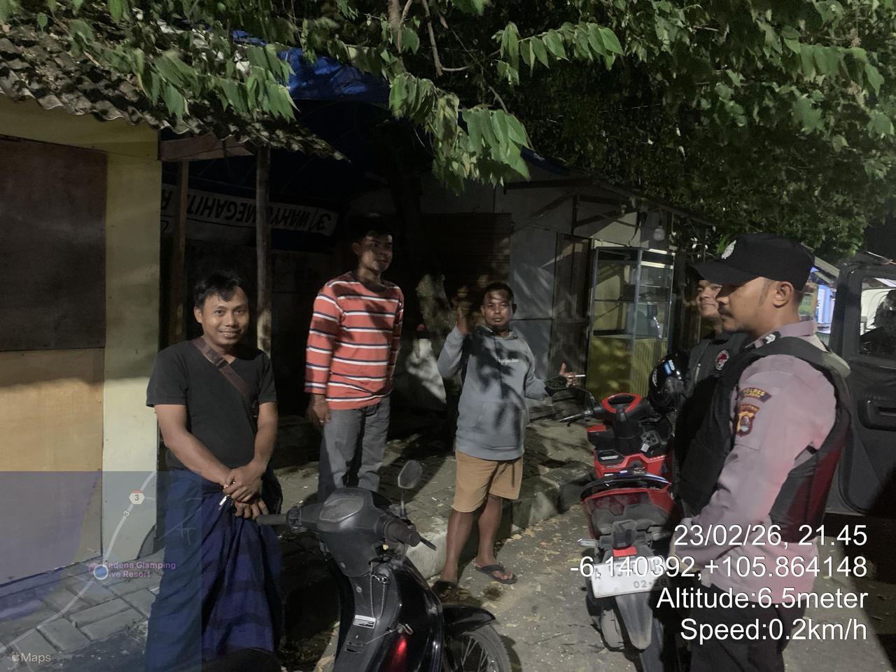 *Cilegon* – Dalam Rangka Pencegahan Kejahatan Jalanan dan Memelihara situasi keamanan dan menjaga serta memberikan rasa aman dan nyaman di masyarakat,Salah satu upaya untuk mewujudkan hal tersebut sebagaimana yang dilakukan oleh Personil Polsek Cinangka Polres Cilegon Polda Banten melaksanakan giat patroli blue light malam hari hingga menjelang pagi, Selasa (24/02/2026).