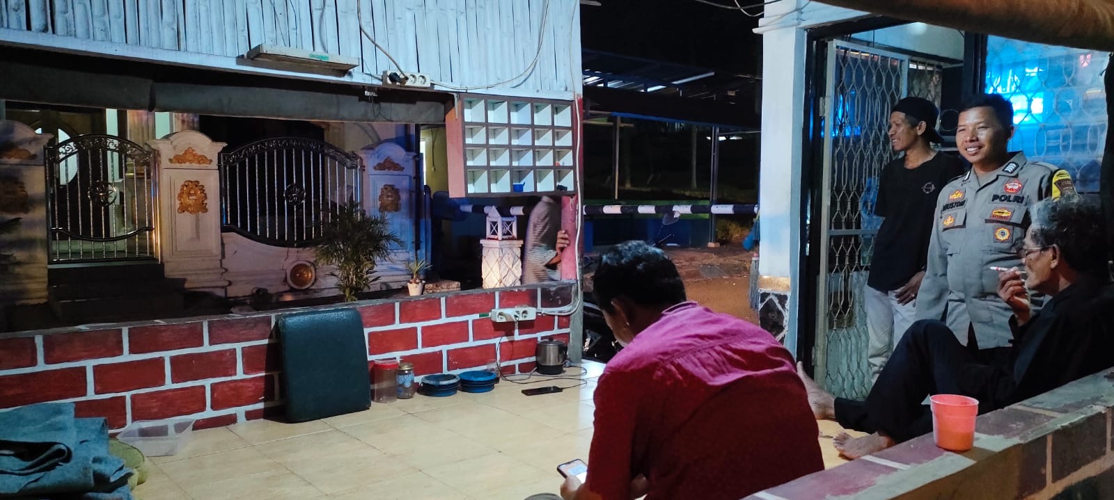 Personil Bhabinkamtibmas Bripka Agustoni Rutin Sambangi Pos Ronda warga Pastikan Situasi Kamtibmas di Bulan Ramadhan Terpantau aman dan Kondusif