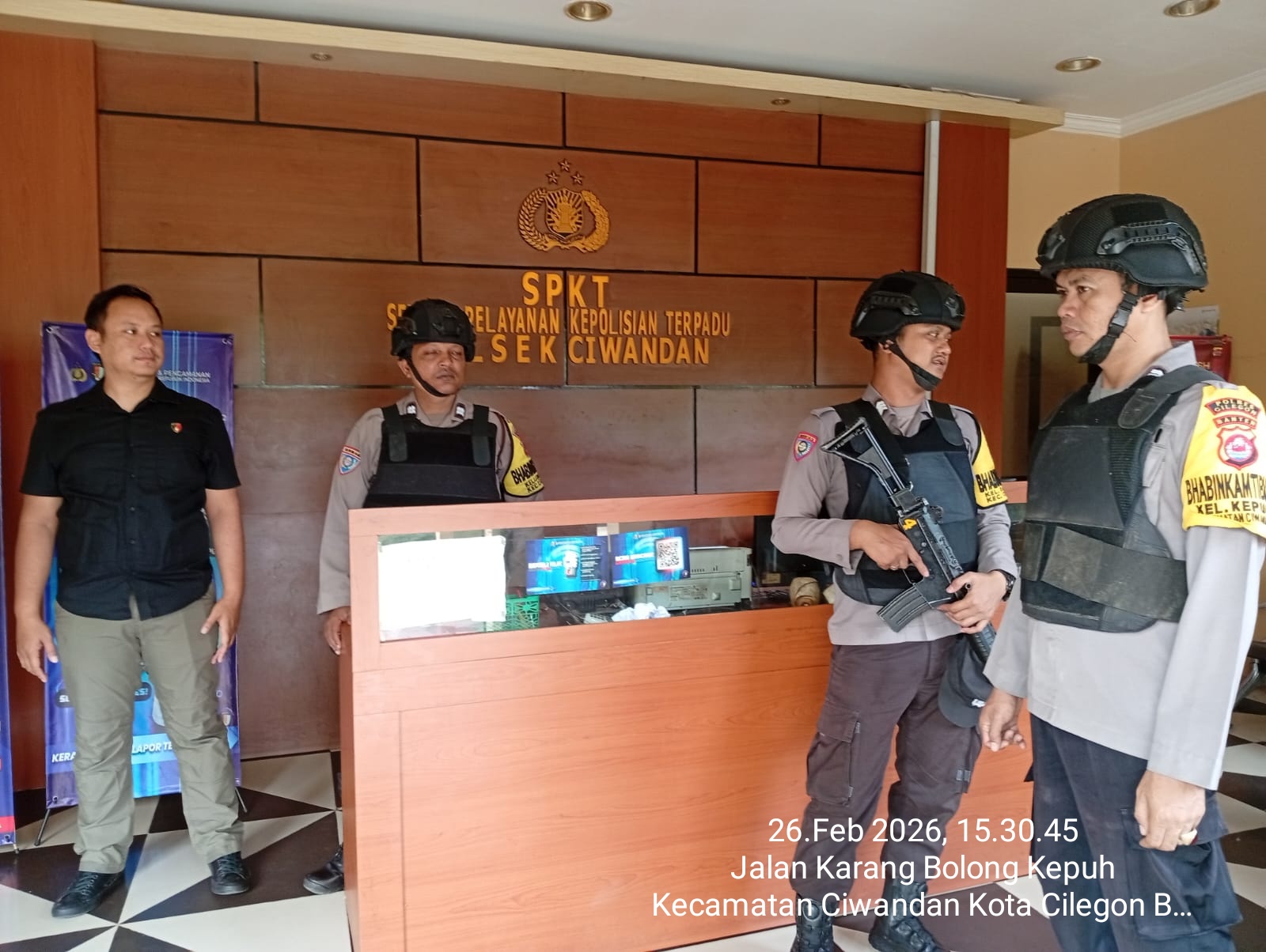 Cilegon – Polres Cilegon Polda Banten Guna mengantisipasi adanya potensi ancaman dan gangguan terhadap keamanan kantor maupun keselamatan personel piket jaga, Personel Polsek Ciwandan Polres Cilegon selalu tingkatkan kesiapsiagaan dan kewaspadaan dengan rutin menggelar kegiatan Sistem Pengamanan Mako (Sispam Mako), Kamis (26/02/2026).