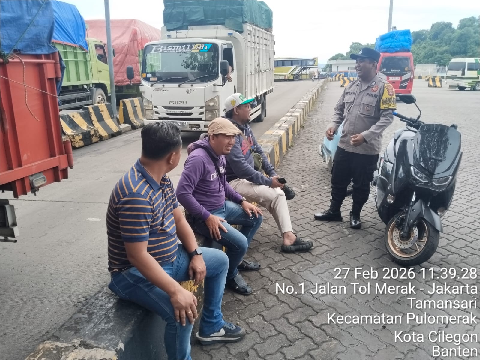 Cilegon - Personel Polsek Kskp Merak Polres Cilegon Polda Banten melaksanakan sambang dan patroli kawasan pelabuhan merak dalam rangka menjaga Harkamtibmas di Kawasan Pelabuhan Merak, Jumat (27/02/2026).