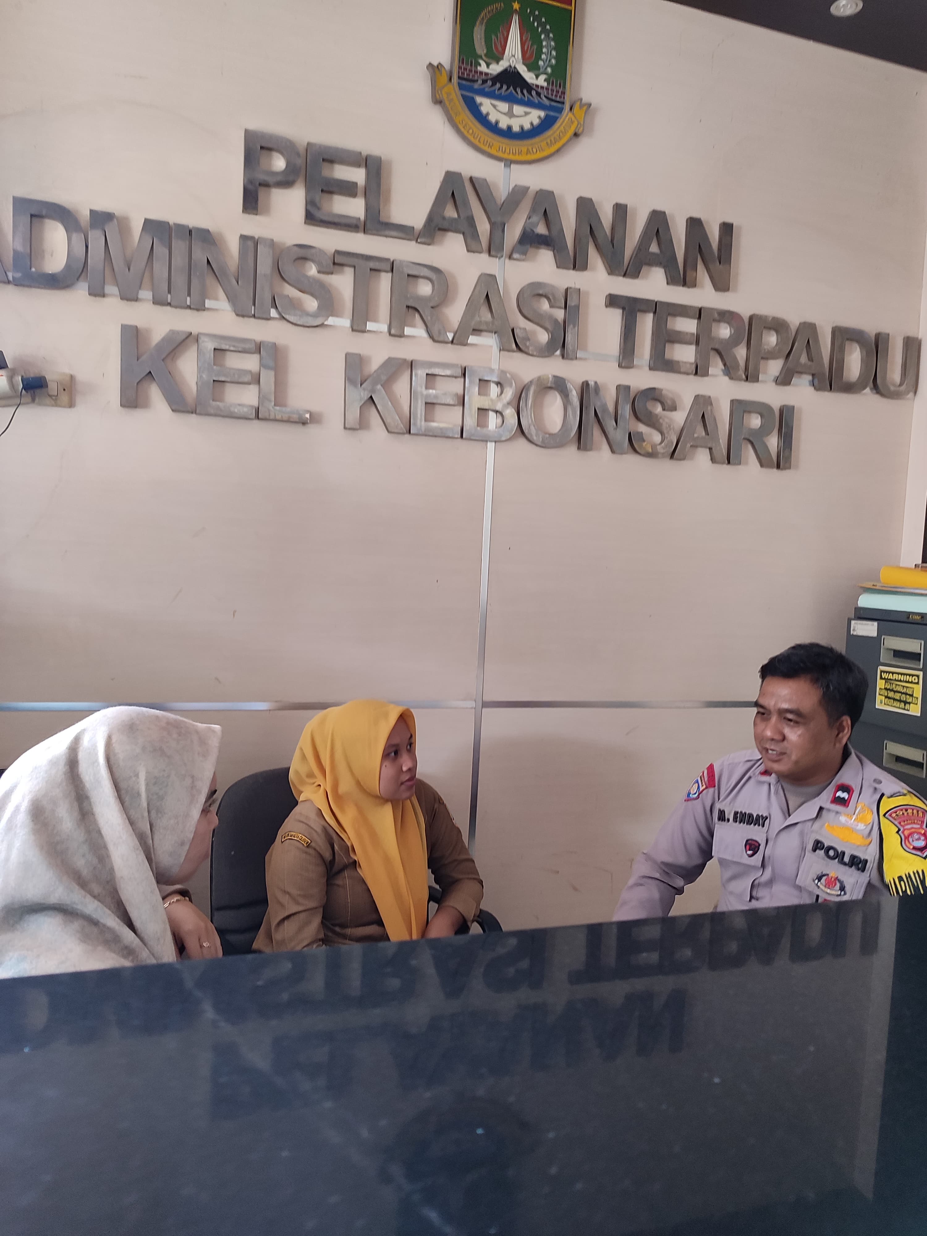 Cilegon - Bhabinkamtibmas Polsek Ciwandan Polres Cilegon Polda Banten AIPDA M.Enday Melaksanakan Pelayanan Masyarakat Guna Bekerja Sama Dengan Kelurahan Kebonsari dan Mendirikan Posko Pengaduan Masyarakat, Sabtu (28/02/2026).