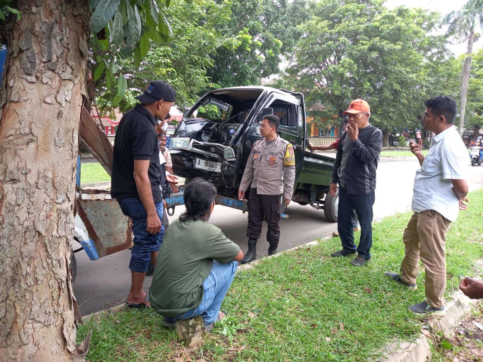 Saat menyapa warga di area sekitar Jalan Utama Perumahan Bukit Palm Hills, Bripka Agustoni melihat sebuah mobil losbak jenis minibus mengalami kendala mesin yang menyebabkan pengemudi kehilangan kendali dan menabrak pohon tepi jalan. Tidak ada korban jiwa dalam insiden ini, namun mobil mengalami kerusakan cukup parah dan memerlukan bantuan derek untuk diangkut ke bengkel.