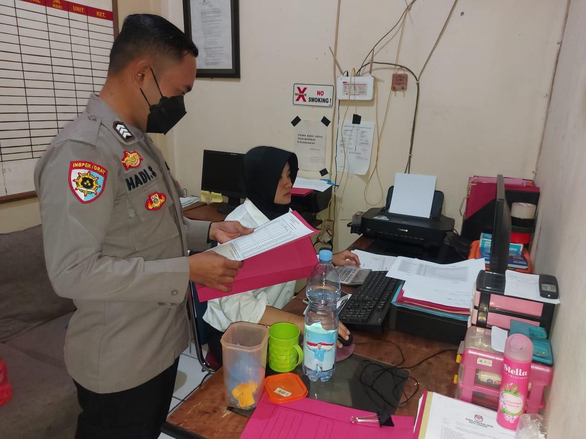 Brigadir HadI.S Personil Siwas Polres Cilegon Mengechek kinerja Sat Tahti Polres Cilegon Polda Banten