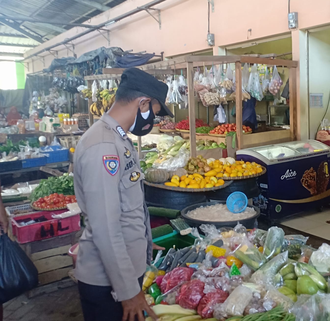 AIPDA Asep Karyudin juga berinteraksi dengan pedagang dan masyarakat sekitar, mendengarkan keluhan dan aspirasi dari masyarakat, serta memberikan himbauan tentang pentingnya menjaga keamanan dan ketertiban di pasar.