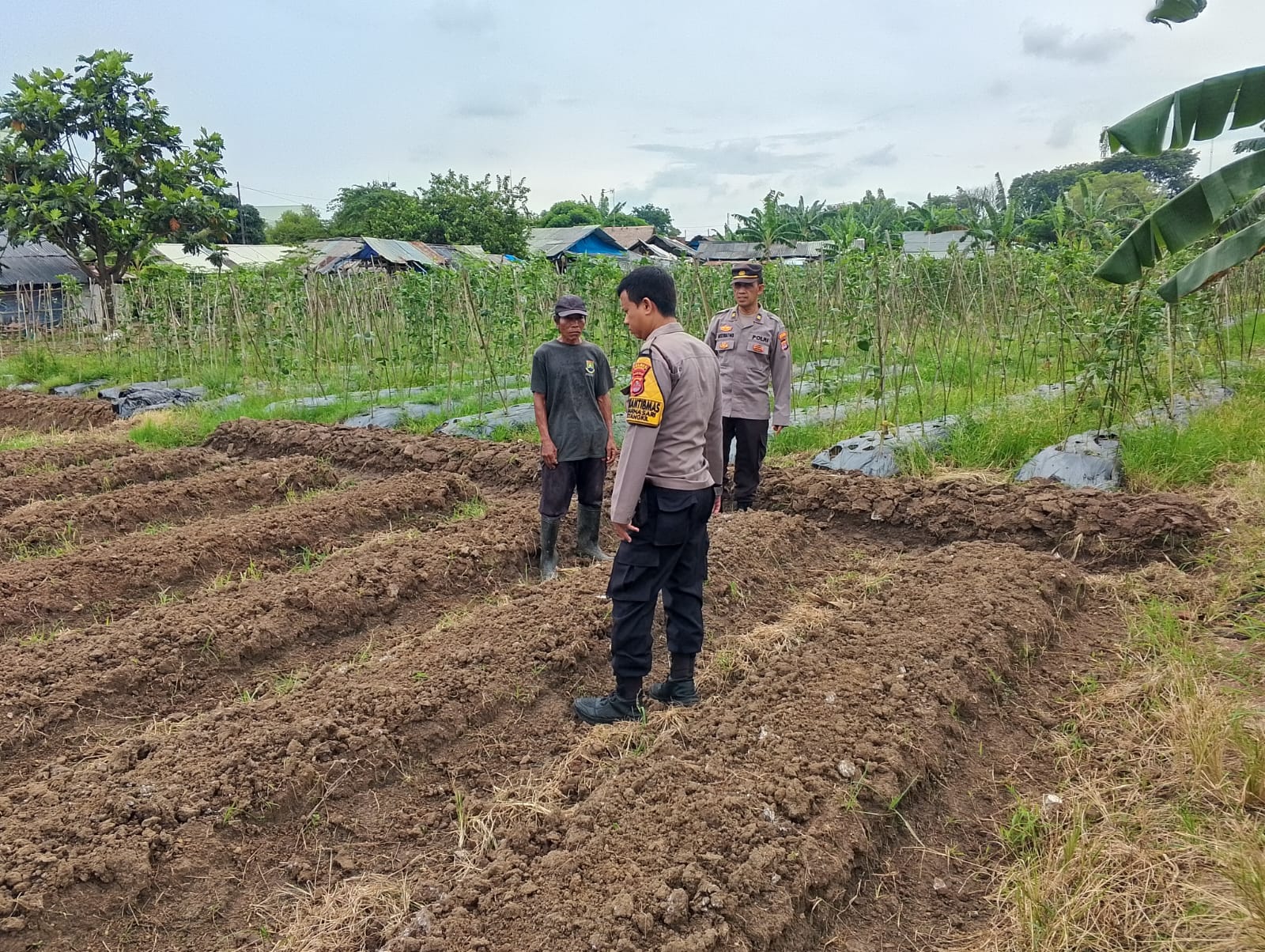 Cilegon - Dalam upaya mendukung program ketahanan pangan nasional Panit Binmas Polsek Ciwandan IPTU Mustriatno Bersama Bhabinkamtibmas Polsek Ciwandan Polres Cilegon Polda Banten AIPDA Mere Erlansyah melaksanakan kegiatan sambang dan kunjungan ke Lahan Produktif warga di lingkungan Kelurahan Warnasari kecamatan Citqngkil kota Cilegon, Senin (02/03/2026).