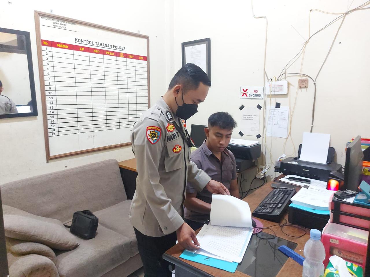 Brigadir HadI.S Personil Siwas Polres Cilegon Mengechek kinerja Sat Tahti Polres Cilegon Polda Banten