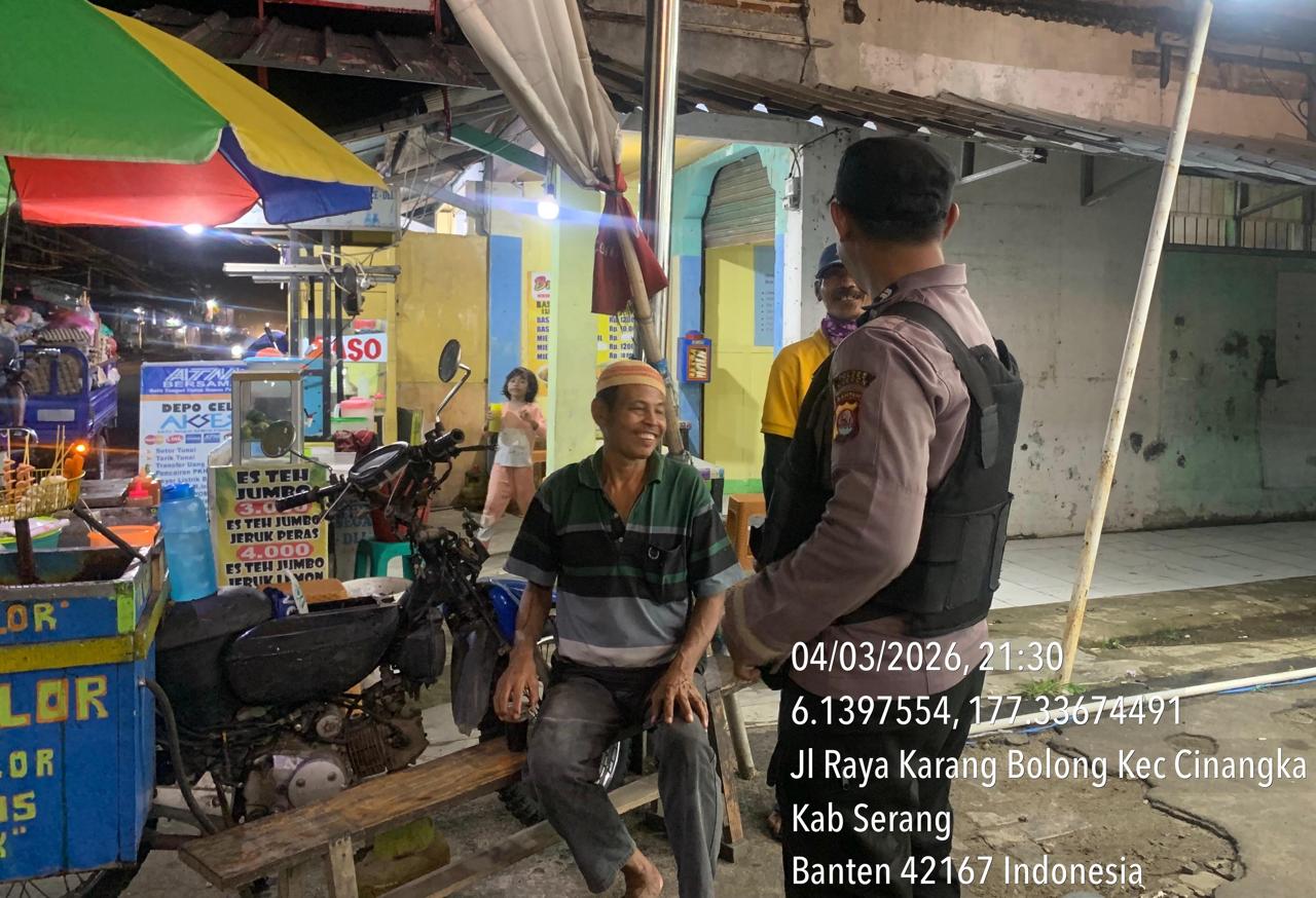 *Cilegon* – Dalam Rangka Pencegahan Kejahatan Jalanan dan Memelihara situasi keamanan dan menjaga serta memberikan rasa aman dan nyaman di masyarakat,Salah satu upaya untuk mewujudkan hal tersebut sebagaimana yang dilakukan oleh Personil Polsek Cinangka Polres Cilegon Polda Banten melaksanakan giat patroli blue light malam hari hingga menjelang pagi, Kamis (05/03/2026).