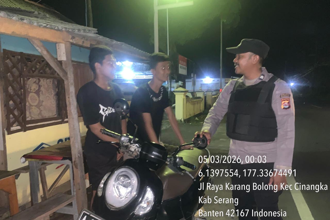*Cilegon* – Dalam Rangka Pencegahan Kejahatan Jalanan dan Memelihara situasi keamanan dan menjaga serta memberikan rasa aman dan nyaman di masyarakat,Salah satu upaya untuk mewujudkan hal tersebut sebagaimana yang dilakukan oleh Personil Polsek Cinangka Polres Cilegon Polda Banten melaksanakan giat patroli blue light malam hari hingga menjelang pagi, Kamis (05/03/2026).