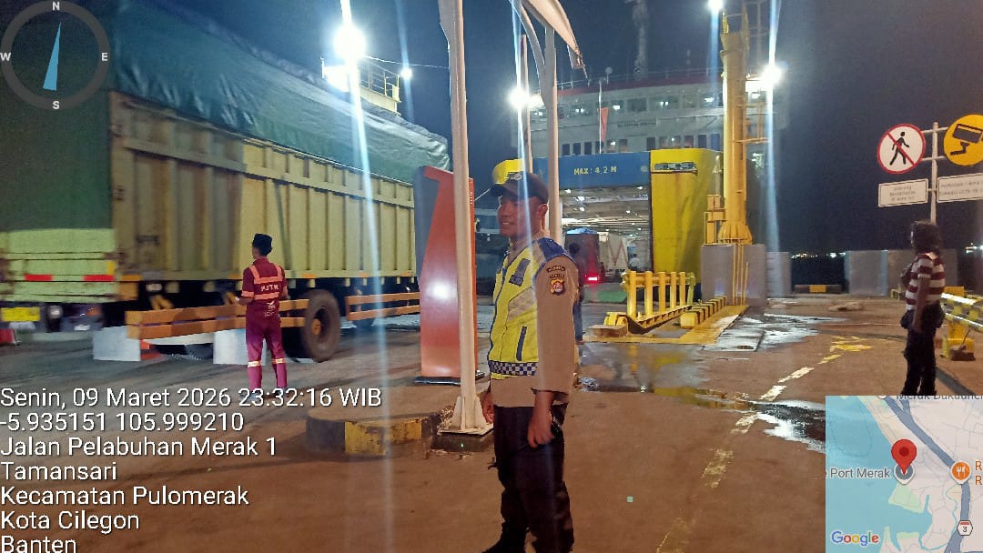Cilegon - Dalam rangka peningkatan pelayanan prima kepada masyarakat, Kskp Merak Polres Cilegon Polda Banten melaksanakan pengaturan antrian R4 yang akan masuk ke Kapal Ferry di Pelabuhan Merak, Senin (09/03/2026).
