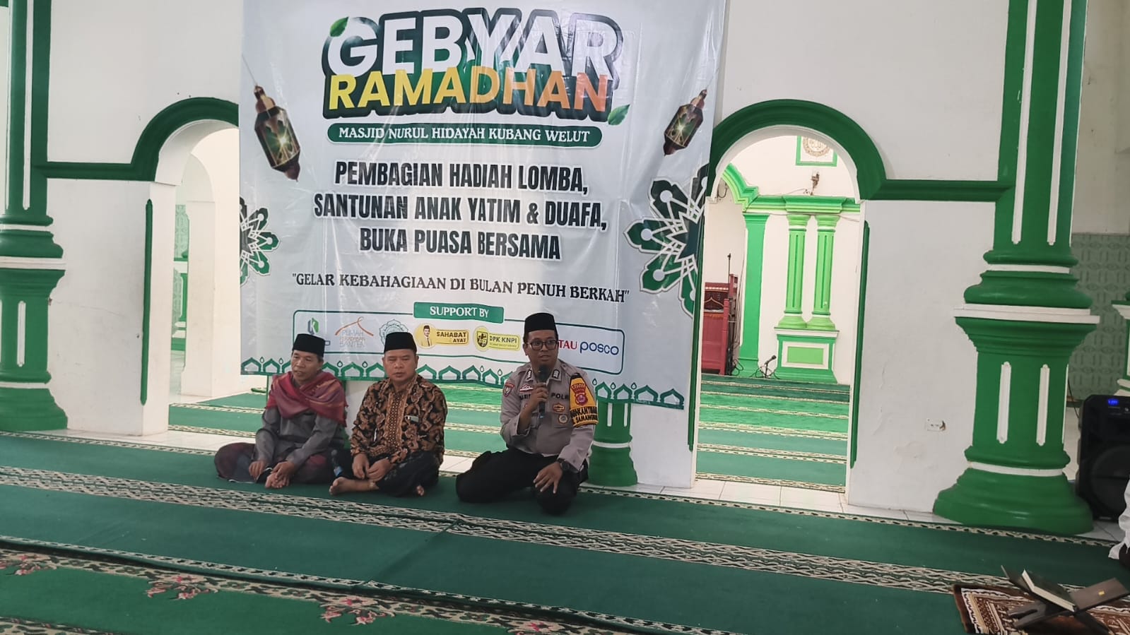 Kegiatan ini dihadiri oleh Anggota DPRD Kota Cilegon, Ayatullah Khumaeni, S.T., Ketua DKM Nurul Hidayah, Dr. Isomudin, S.H., M.Pd., Ketua RW dan RT, serta tokoh masyarakat setempat. Dalam kesempatan tersebut, Bhabinkamtibmas Kel. Samangraya, BRIPKA MARISCO, S.H., menyampaikan himbauan Kamtibmas kepada masyarakat, antara lain antisipasi Tindak Pidana 3 C (Curat, Curas, Cugan), Penipuan Online/Scamming, serta Tindak Pidana atau Tibum lainnya.