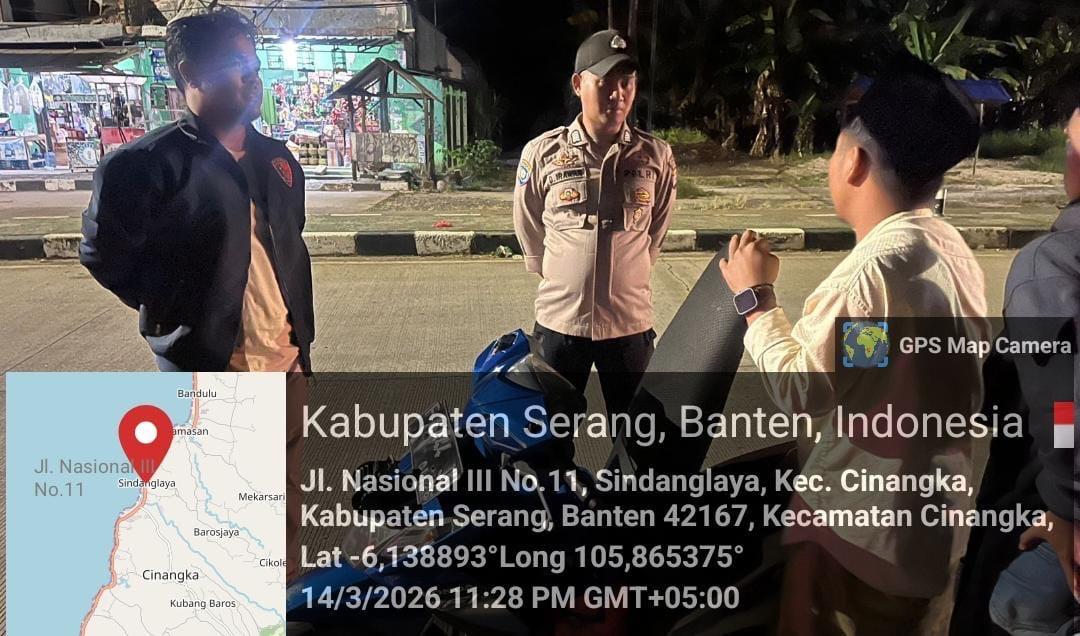 *Cilegon* – Dalam Rangka Pencegahan Kejahatan Jalanan dan Memelihara situasi keamanan dan menjaga serta memberikan rasa aman dan nyaman di masyarakat,Salah satu upaya untuk mewujudkan hal tersebut sebagaimana yang dilakukan oleh Personil Polsek Cinangka Polres Cilegon Polda Banten melaksanakan giat patroli blue light malam hari hingga menjelang pagi, Minggu (15/03/2026).