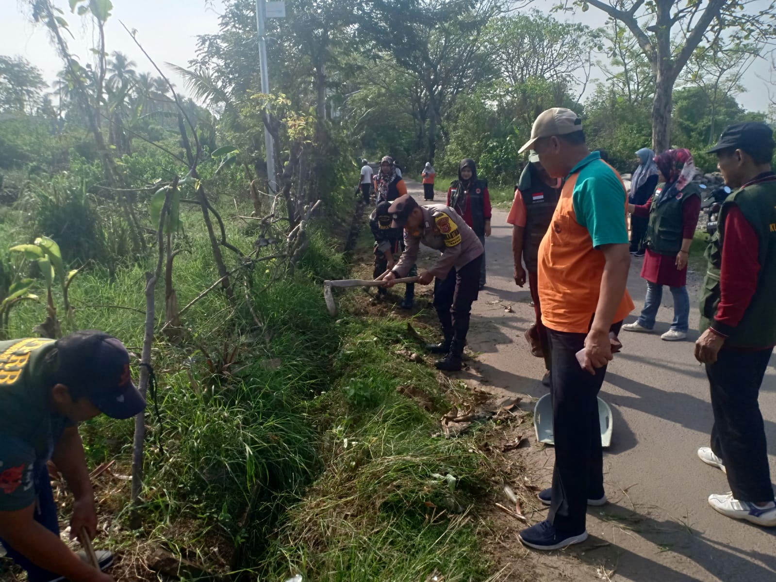 Cilegon - Bhabinkamtibmas Kelurahan Warnasari Polsek Ciwandan Polres Cilegon Polda Banten AIPDA Asep Karyudin bersama warga melaksanakan Gotong Royong Kerja Bhakti bersih-bersih Lingkungan Kelurahan Kubangsari, Minggu (15/03/2026).