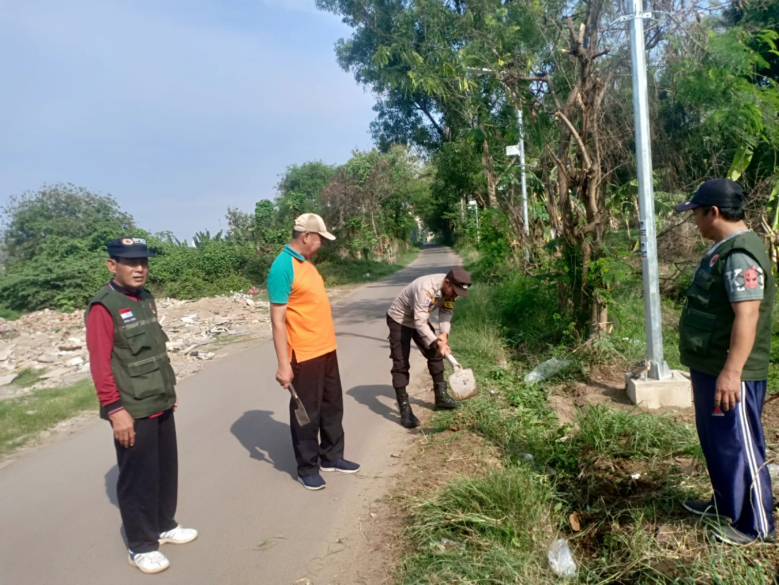 Cilegon - Bhabinkamtibmas Kelurahan Warnasari Polsek Ciwandan Polres Cilegon Polda Banten AIPDA Asep Karyudin bersama warga melaksanakan Gotong Royong Kerja Bhakti bersih-bersih Lingkungan Kelurahan Kubangsari, Minggu (15/03/2026).