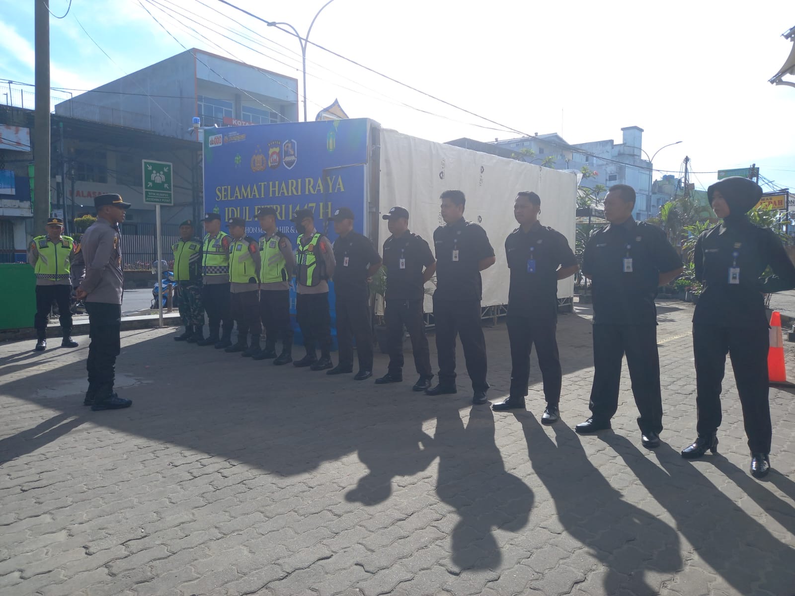 -Polres Cilegon- Polda Banten. Dalam rangka memastikan keamanan dan kelancaran aktivitas masyarakat menjelang Hari Raya Idul Fitri 1447 H, Kapolsek Purwakarta IPTU Sukanda melakukan apel pengaturan personel di Pos Pam 3 Landmark, Cilegon, pada hari ini.kamis. (19/03/2026).