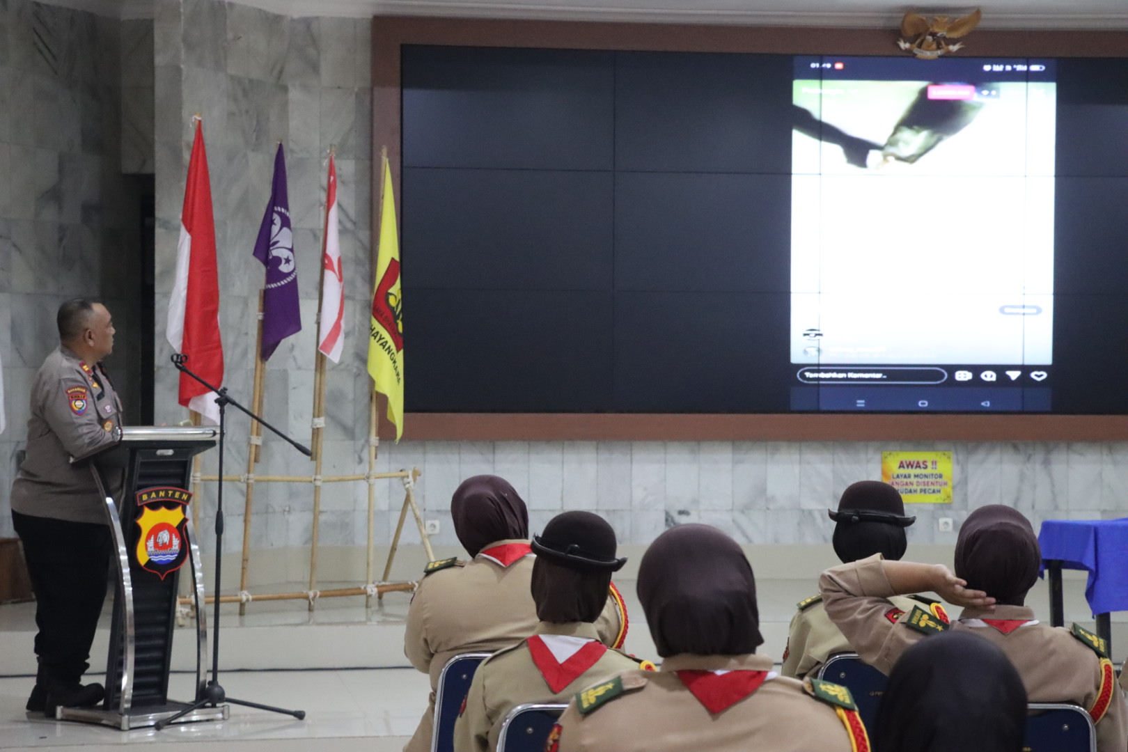 AKP Sigit Dermawan S.H, menghimbau kepada calon saka Bhayangkara untuk membantu tugas Kepolisian dan memberikan informasi terkait harkamtibmas di wilayahnya dan ,apabila ada gangguan Kamtibmas segera menghubungi Polsek terdekat atau ke Call center 110 Polres Cilegon.