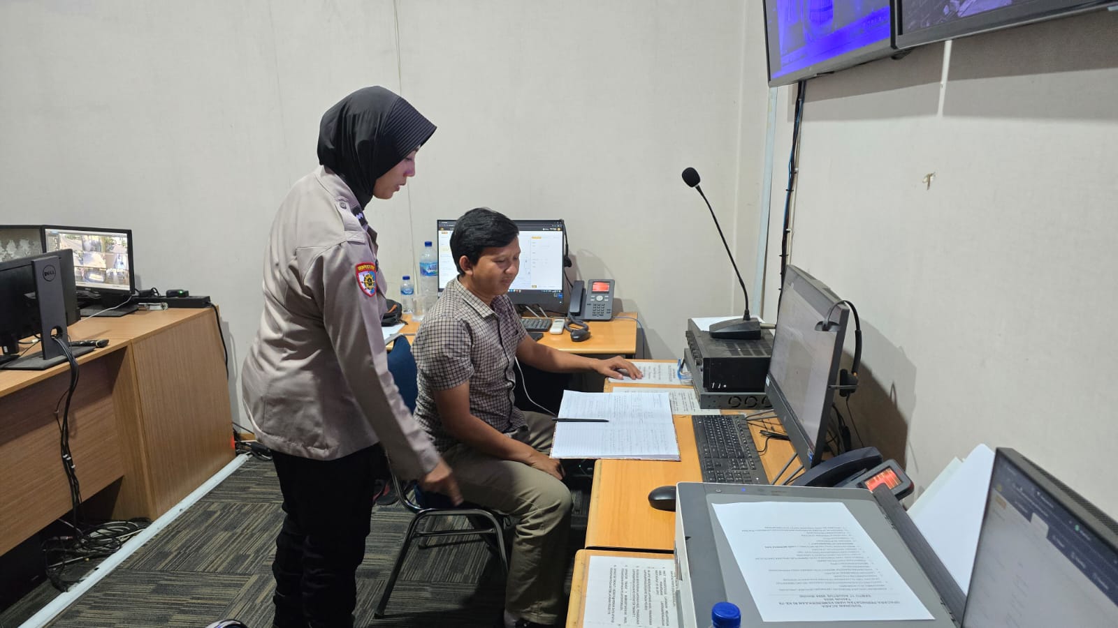 Cilegon,Polres Cilegon Polda Banten Pada Minggu/05/04/2026 Pukul 10.00 Wib, brigpol Aipda Emy P  selaku Personil siwas melaksanakan Pengechekan pada piket jaga 110 Polres Cilegon.
