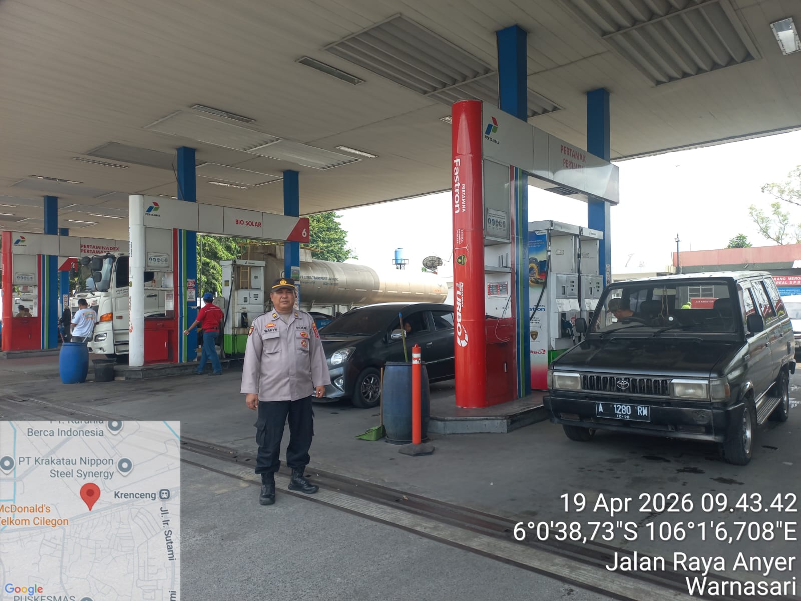 Personil Polsek Ciwandan Polres Cilegon Program Quick Wins Presisi Dalam Rangka kegiatan Kunjungan Sambang Dan DDS ke SPBU di Wilayah hukum Polsek Ciwandan Polres Cilegon & Monitoring Stok BBM. Minggu, 19/04/2026.