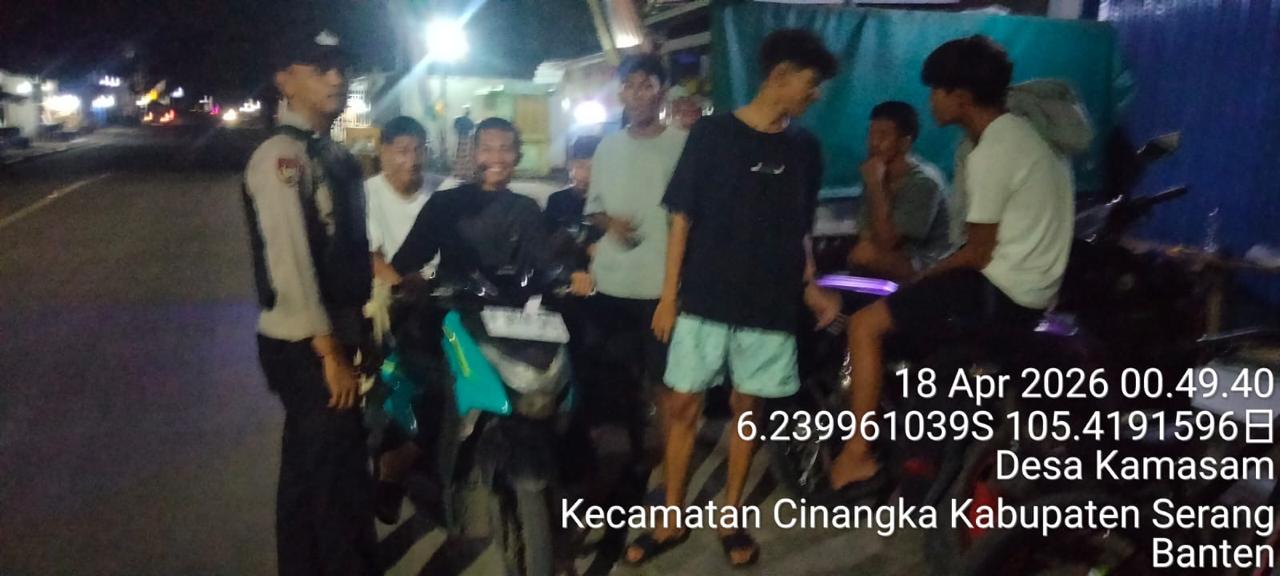 *Cilegon* – Dalam Rangka Pencegahan Kejahatan Jalanan dan Memelihara situasi keamanan dan menjaga serta memberikan rasa aman dan nyaman di masyarakat,Salah satu upaya untuk mewujudkan hal tersebut sebagaimana yang dilakukan oleh Personil Polsek Cinangka Polres Cilegon Polda Banten melaksanakan giat patroli blue light malam hari hingga menjelang pagi, Minggu (19/04/2026).