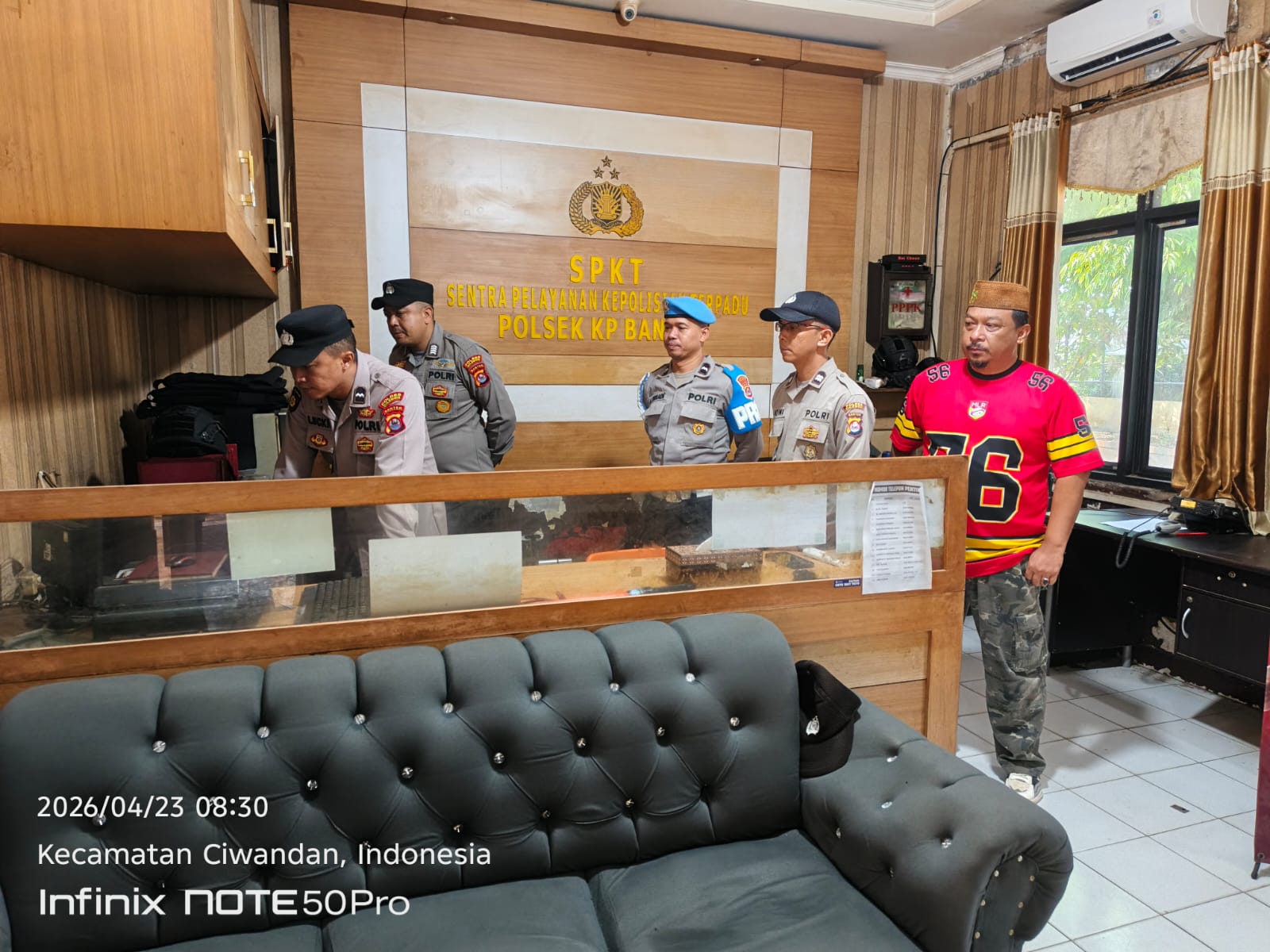 Cilegon.  Personel piket jaga Polsek Kskp Banten Polres Cilegon Polda Banten melaksanakan Pengamanan Mako Polsek, Kamis (23/04).