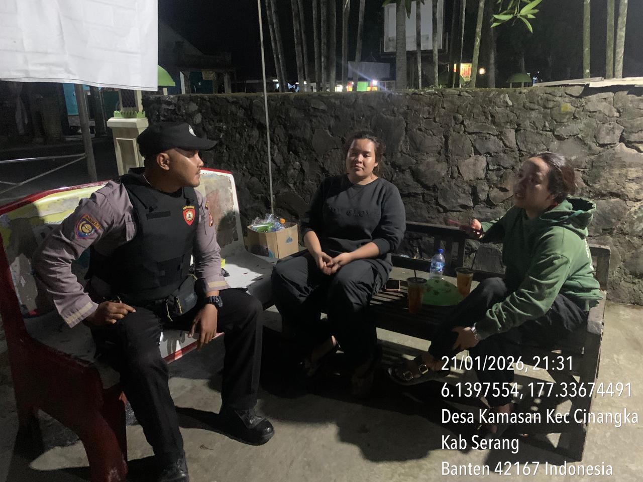 Mancak ~ Salah satu upaya memelihara Kamtibmas yang dilakukan Polri yakni Door To Door System (DDS) dan Sebagai bentuk mendukung Program Quick Wins Presisi Polri saat ini Bhabinkamtibmas bertatap muka dengan Masyarakat bertempat di Desa. Pasirwaru Kec. Mancak serta mengajak untuk menjaga kamtibmas terus mensosialisasikan Harkamtibmas, MINGGU, 25/01/2026 Kapolres Cilegon Polda Banten AKBP Dr. Martua...
