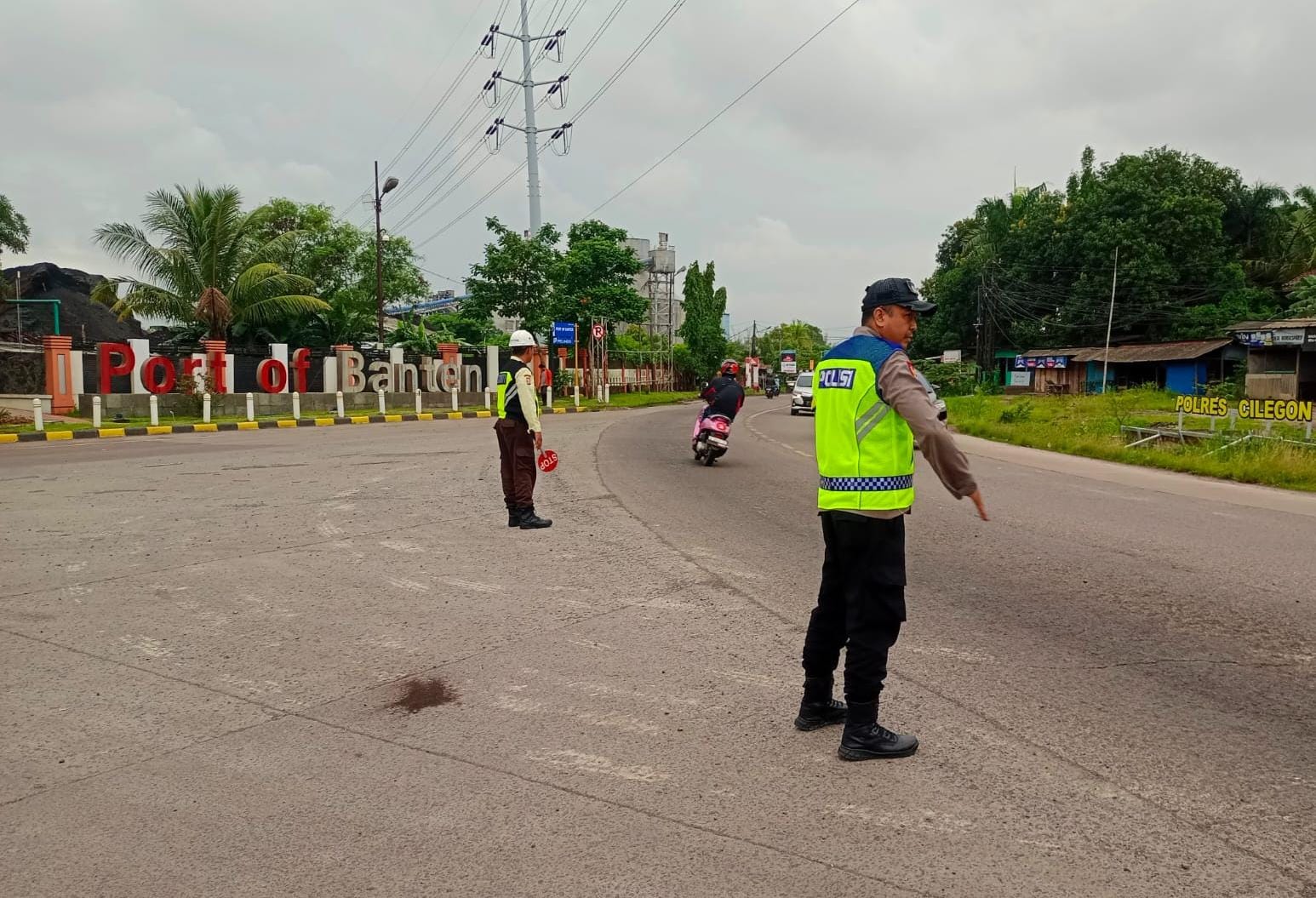 Anggota patroli samapta Polsek Cilegon sambang kepada warga jalin keakraban jaga keamanan