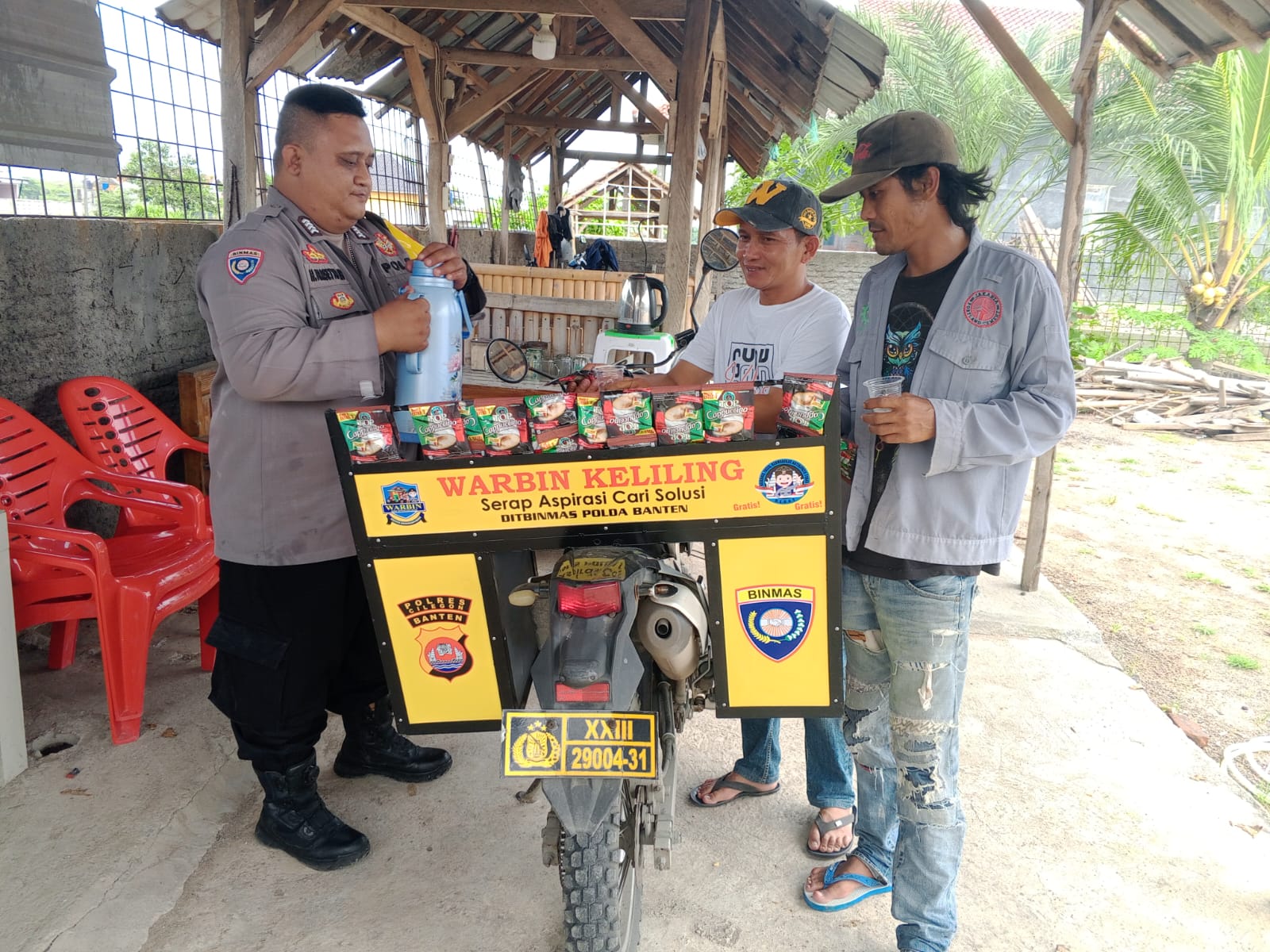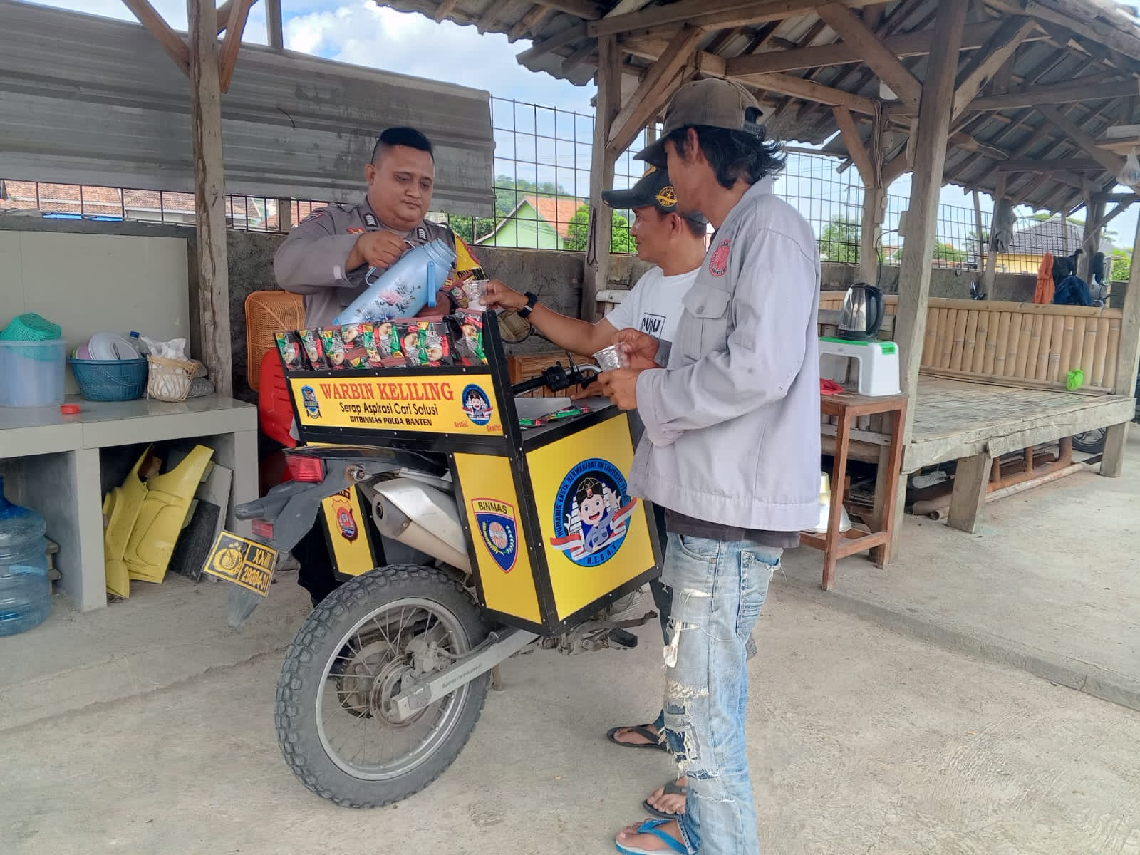 Personil sat intelkam melakukan koordinasi dengan tokoh masyarakat kec. Ciwandan kota cilegon.