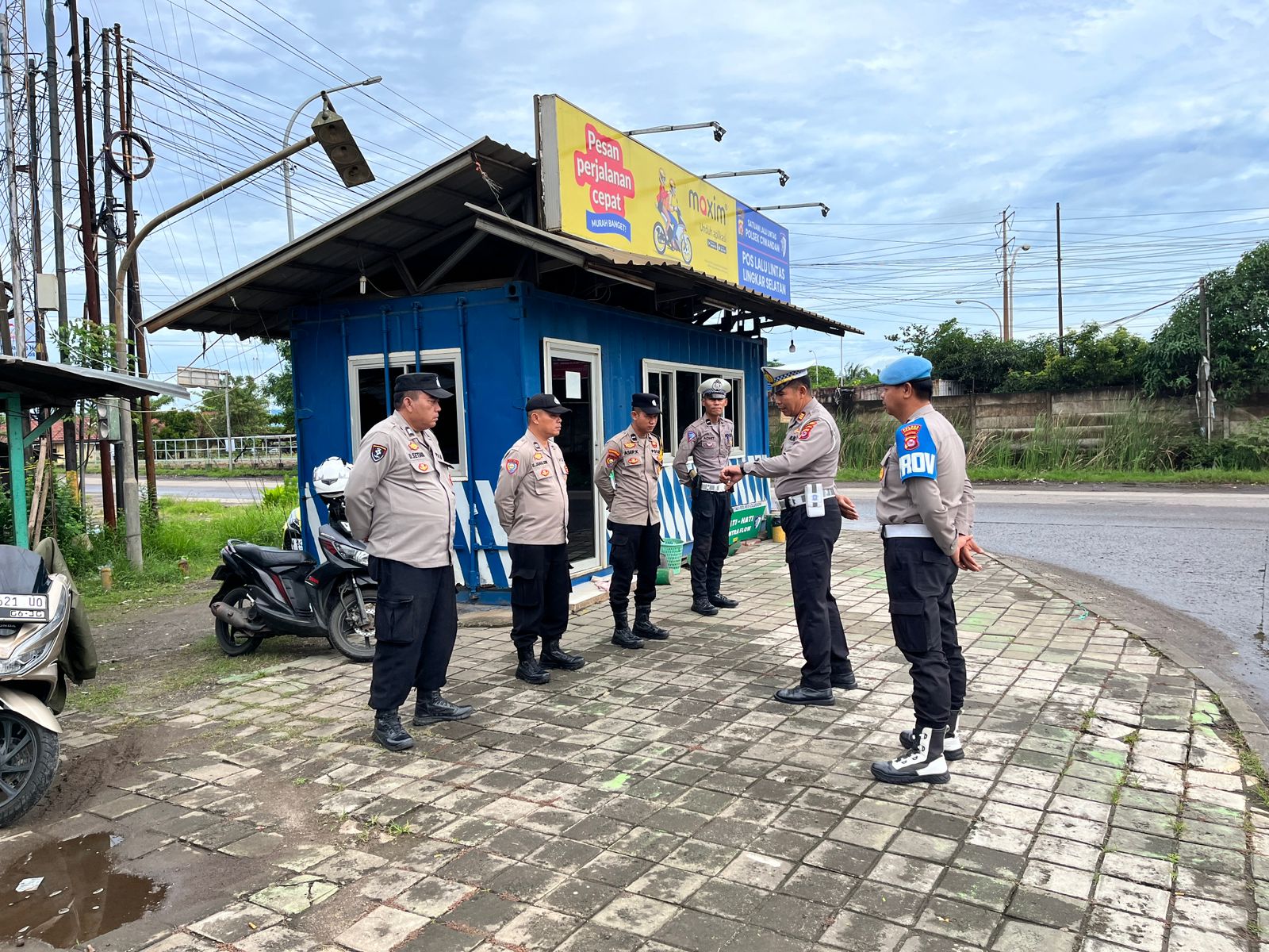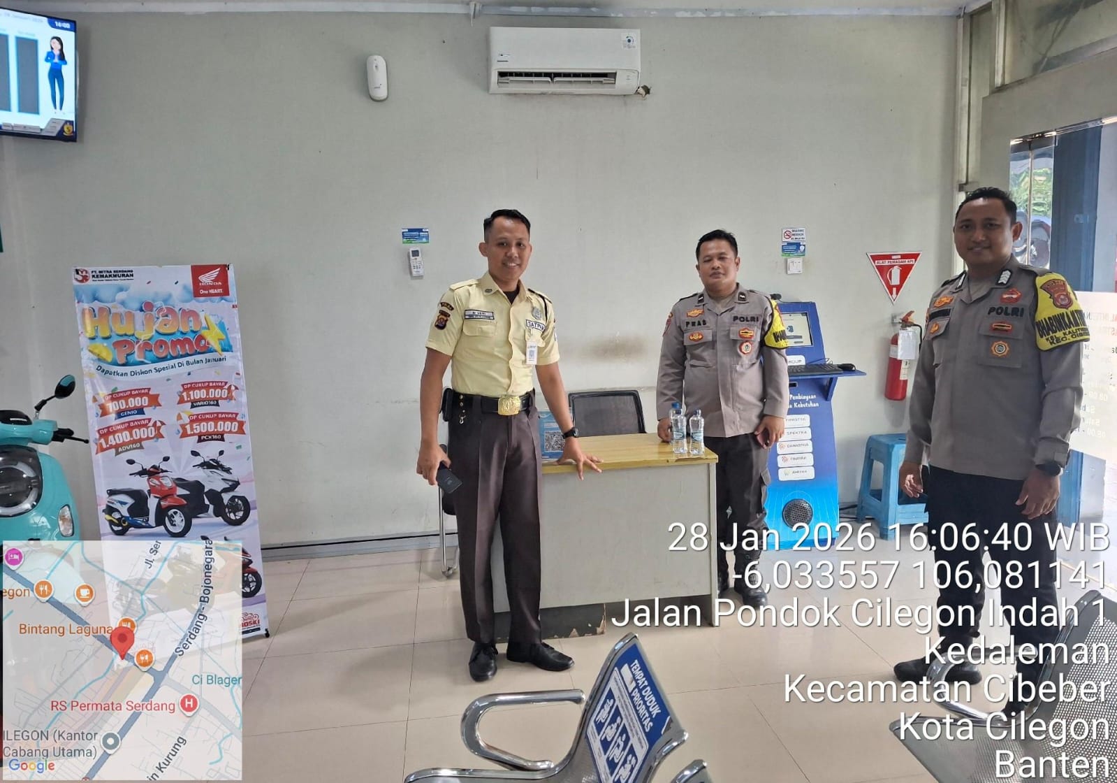 Sispam Mako Personil Polsek Ciwandan Monitoring Akses Keluar Masuk Kantor.