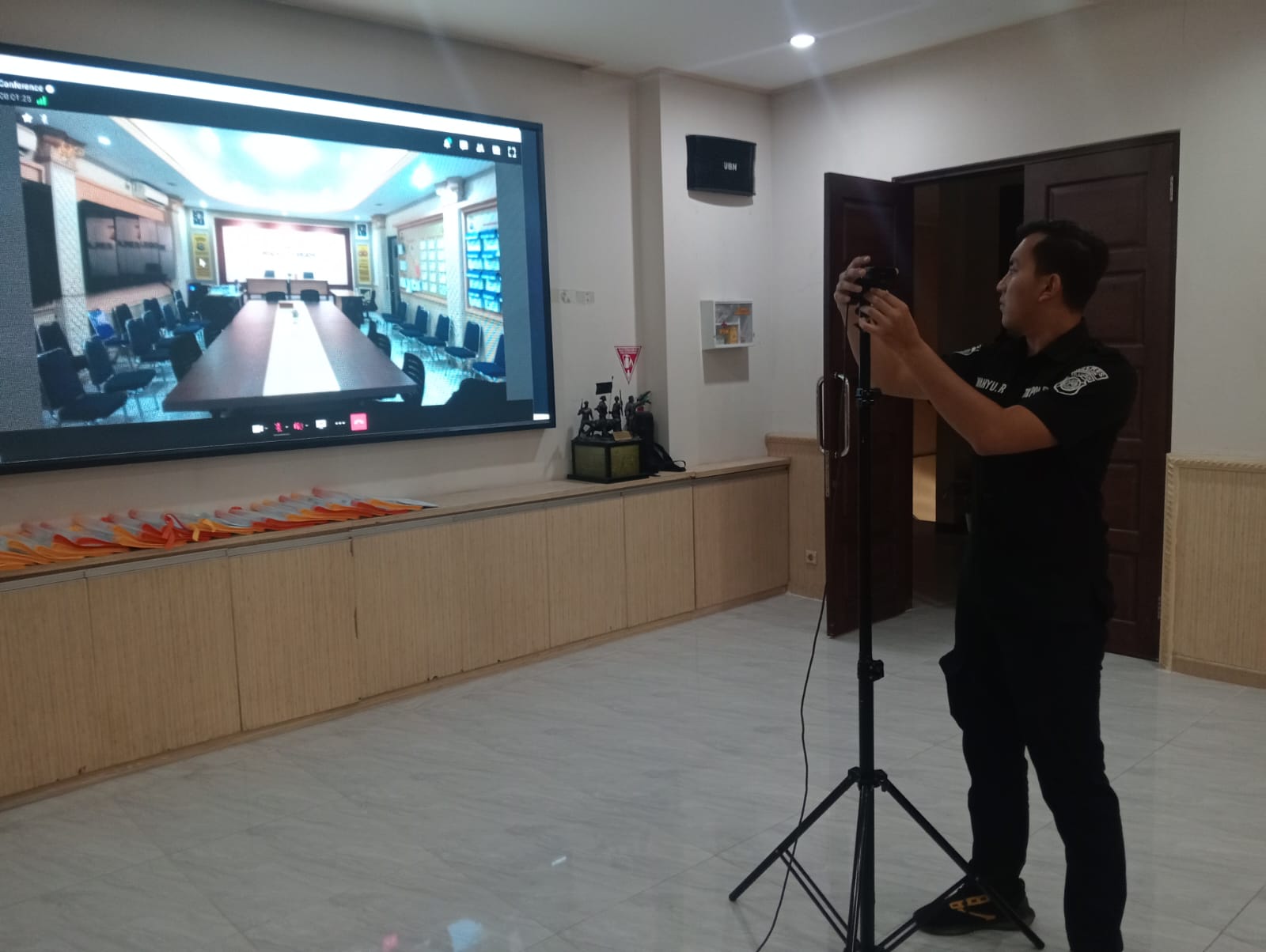 Anggota Tik Polres Cilegon Menyiapkan Sarana dan Prasarana Untuk Kegiatan Zoom meeting Dalam pelaksanaan kegiatan zoom meeting tersebut anggota TIK Polres Cilegon yang bertanggung jawab untuk menyiapkan peralatan zoom. Selain itu agar di tidak ada gangguan jaringan sebelum pelaksanaan anggota TIK melakukan pemeriksaan terhadap sarana dan prasarana tersebut . Satu jam...
