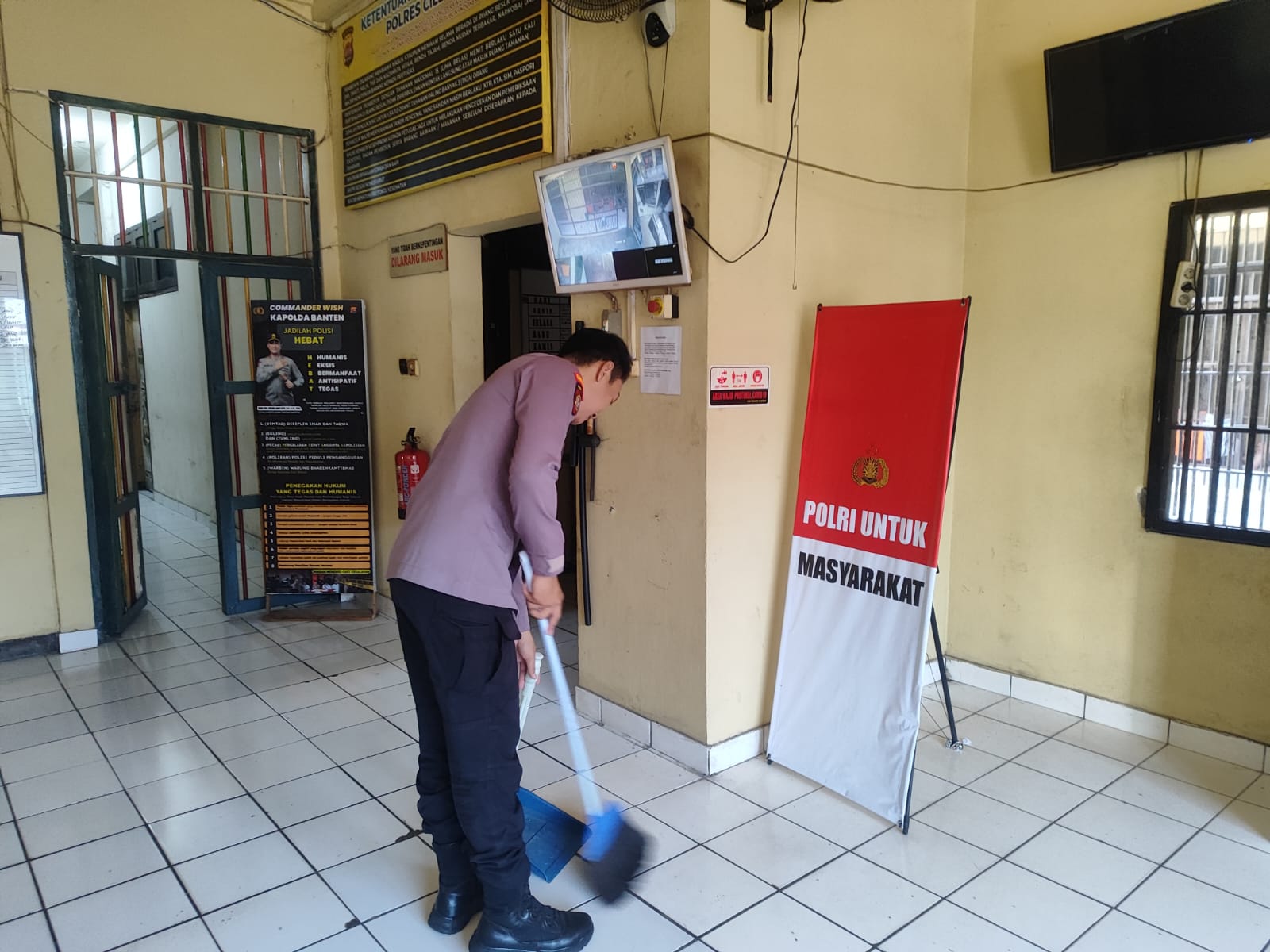 Piket Sattahti Polres Cilegon Selalu Melakukan Merutinkan Bersih-Bersih Di Sekitar Rutan