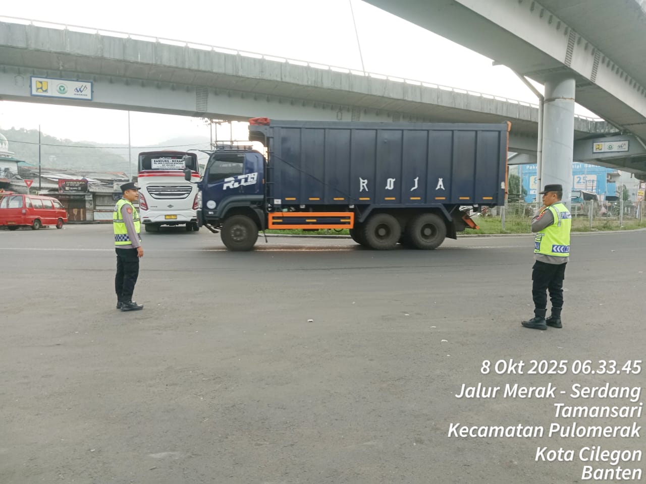 Dukung Kelancaran Penyeberangan, Polsek KSKP Merak Atur Arus Kendaraan di Pelabuhan