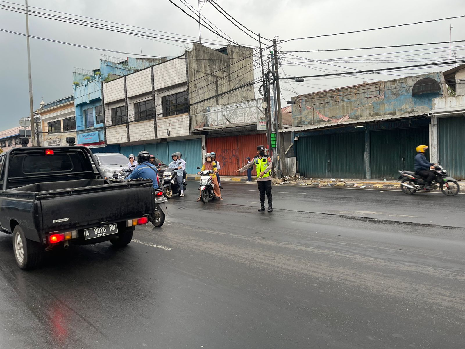 anggota polres cilegon laksanakan giat pengaturan setiap pagi hari