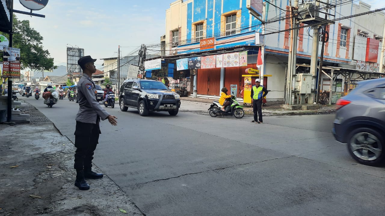 Cilegon ~ Dalam rangka peningkatan pelayanan prima kepada pengguna jalan, Polsek Cilegon Polres Cilegon Polda Banten melaksanakan pengaturan arus lalu lintas di perempatan jalan arteri antisipasi kepadatan arus di pagi hari.