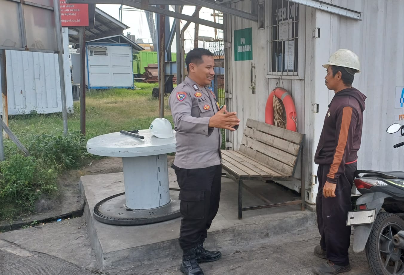 Jalin Silaturahmi, Personil Bhabinkamtibmas Pelabuhan Polsek KP Banten berbincang bersama Buruh Pelabuhan