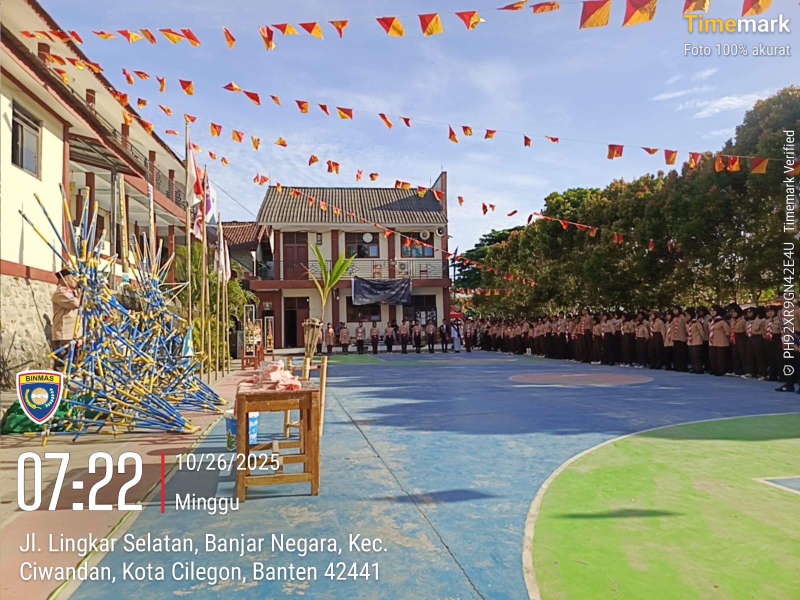 Cilegon - Kasat Binmas IPTU Muhidin dan Wakapolsek Ciwandan AKP Uup M. Ma'ruf Serta Bhabinkamtibmas Polsek Ciwandan menghadiri kegiatan pembukaan Lomba Tangkas Pramuka Se-Banten Tahun 2025 di SMA Al-Khairiyah 4 Cilegon, Minggu (26/10/2025).