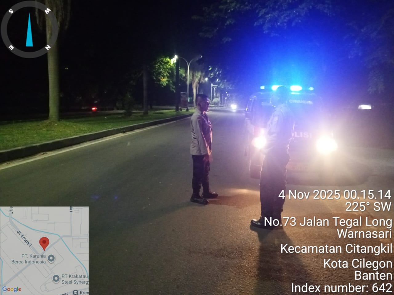 Cilegon - Personil Polsek Ciwandan Polres Cilegon Polda Banten Selalu Melaksanaan Kegiatan KRYD (Kegiatan Rutin Yang Ditingkatkan) Patroli Rutin malam hari di daerah hukum Polsek Ciwandan Guna Persempit Ruang Pelaku Tindak Kejahatan, Selasa (04/11/2025).