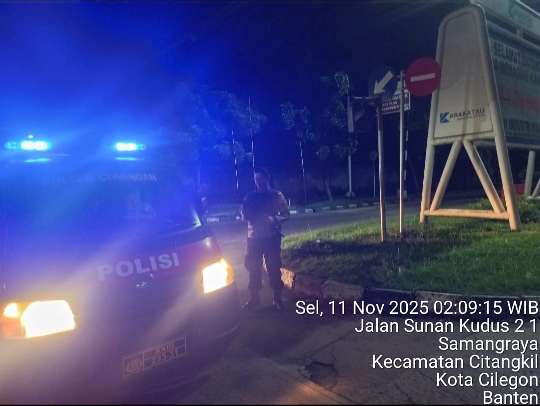 Polsek Ciwandan Patroli Blue Light Dalam Pencegahan Segala Bentuk Aksi Kejahatan.