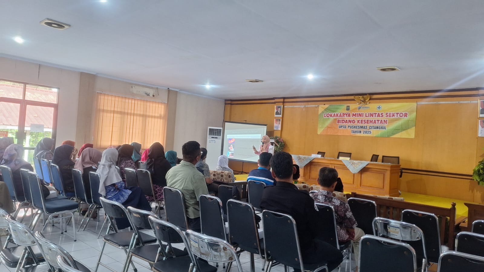 Cilegon - Ps. Kasie Humas Polsek Ciwandan Polres Cilegon Polda Banten BRIPKA Herawan Sepridho Bersama Personil Bhabinkamtibmas Polsek Ciwandan BRIPKA Marisco menghadiri kegiatan Lokakarya mini Lintas Sektor Bidang Kesehatan UPTD Puskesmas Citangkil I Tahun 2025 Di Aula Kantor Kecamatan Citangkil, Kamis (13/11/2025).