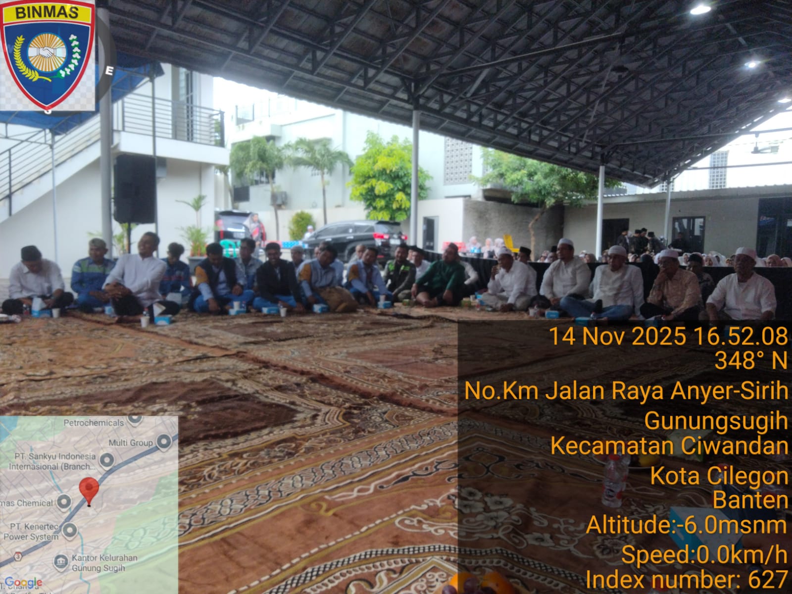 Cilegon - Bhabinkamtibmas Polsek Ciwandan Polres Cilegon Polda Banten menghadiri kegiatan Doa Bersama dan Dilanjutkan Pengajian Rutin dilingkungan Kelurahan Gunung Sugih Kecamatan Ciwandan Kota Cilegon, Jum’at (14/11/2025).
