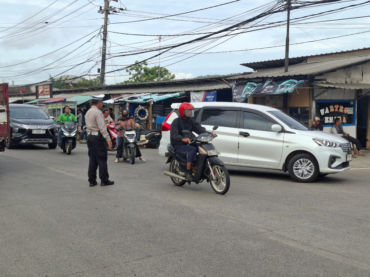 Polsek Anyar Melaksanakan Pengaturan Lalu Lintas Agar Jalur Tetap Aman Lancar