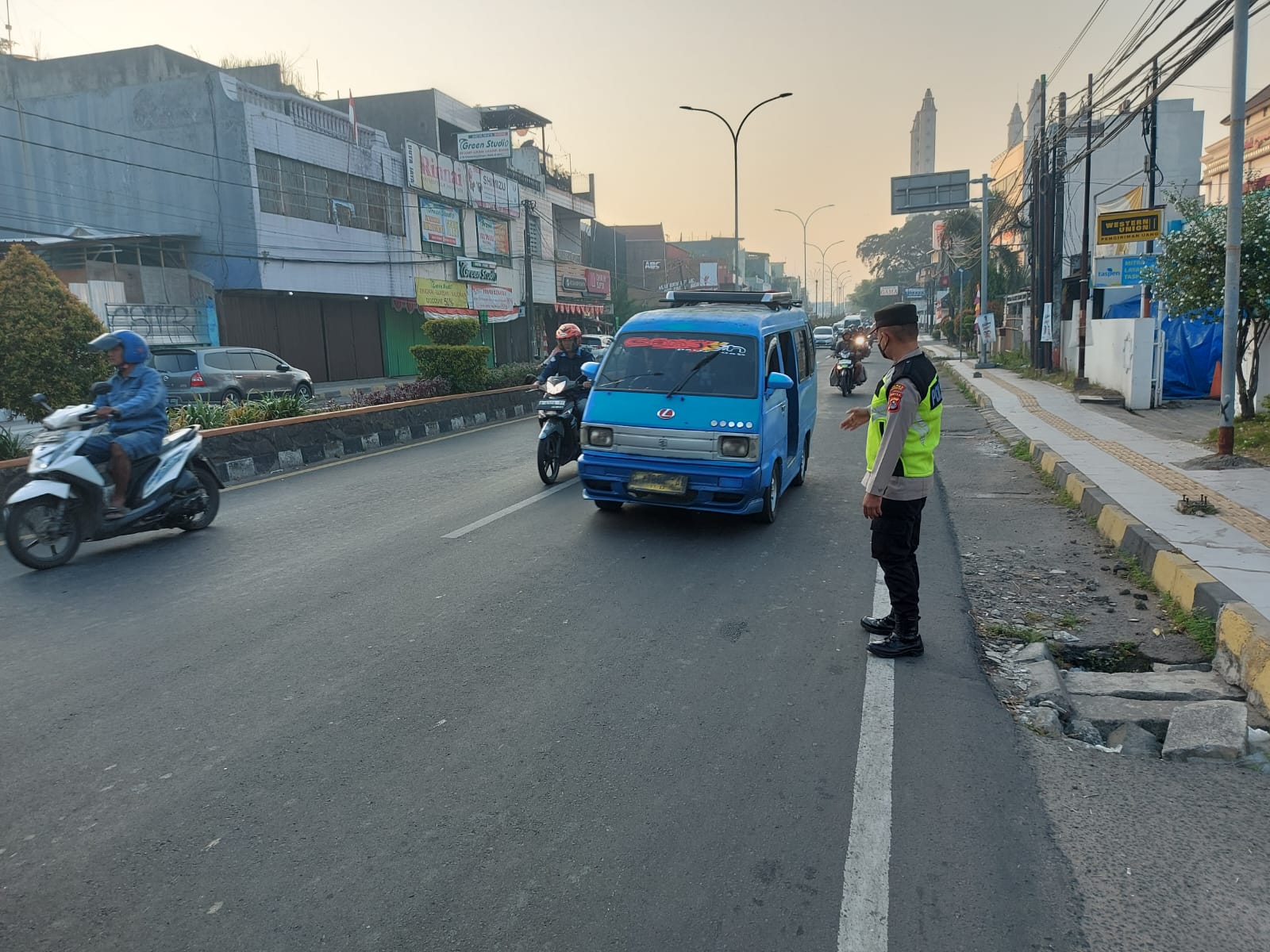 Cilegon,Polres Cilegon Polda Banten Pada Rabu 19/11/2025 Pukul 06.30 Wib, Personil Siwas Polres Cilegon, Brigpol Hadi sudrajat melaksanakan kegiatan pengaturan arus lalu lintas di Jalur Protokol jalan utama Kota Cilegon tepat nya di jalur protokol Kota Cilegon.