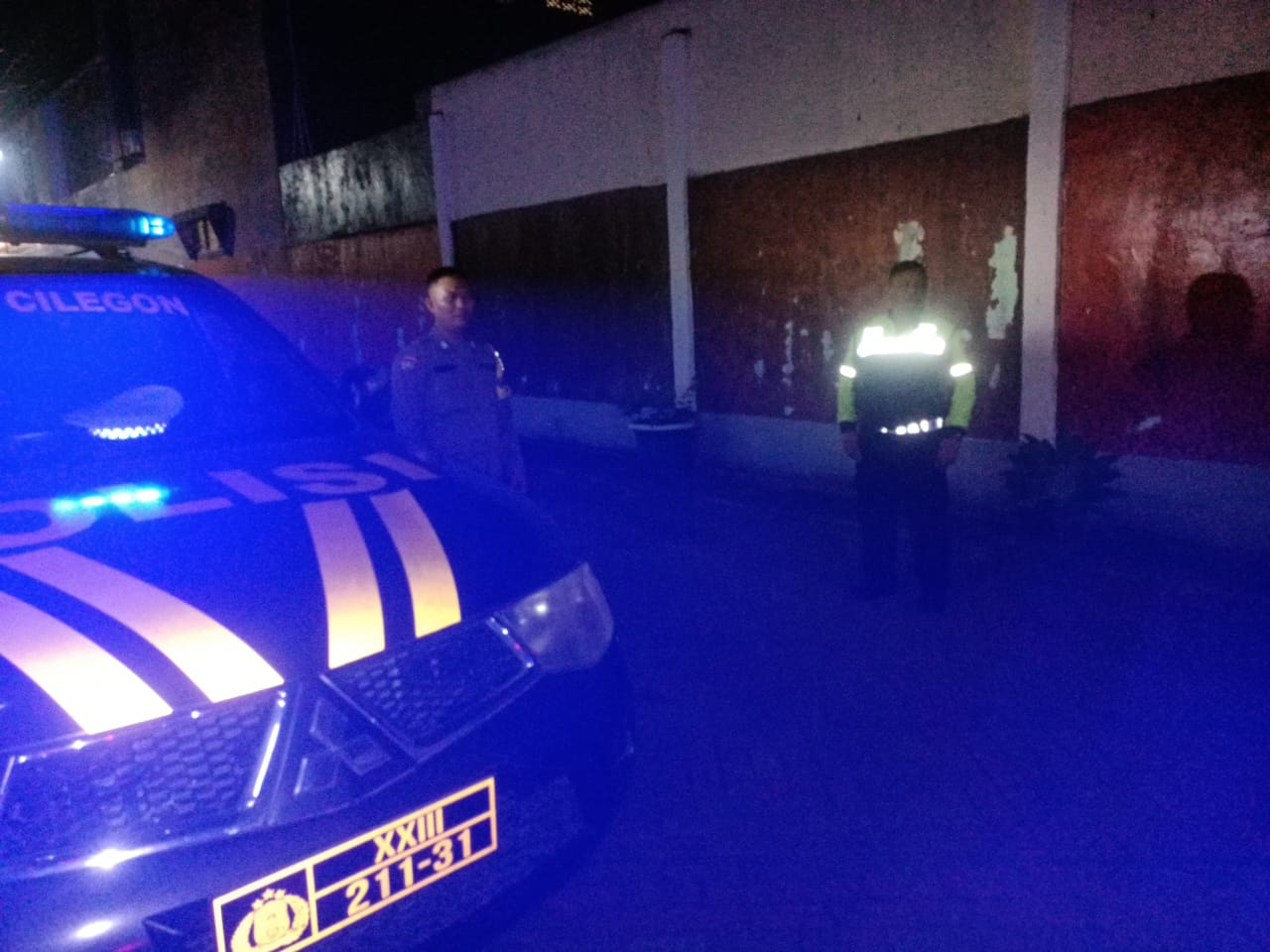 Anggota patroli samapta Polsek Cilegon lakasnakan Blue light patrol antisipasi kejahatan malam hari jaga keamanan
