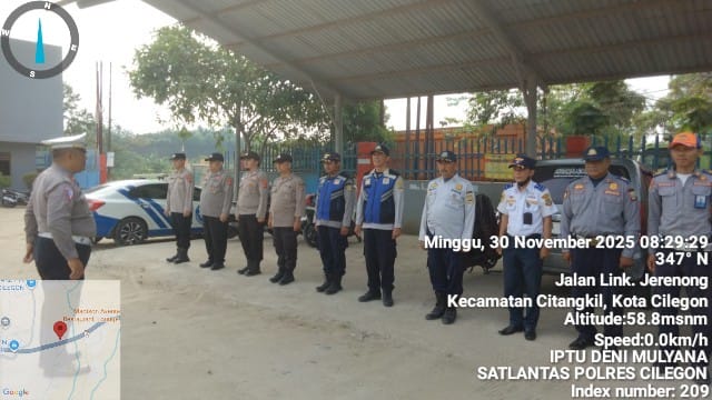 Cilegon - Panit Lantas Polsek Ciwandan IPTU Deni Mulyana Bersama Personil Gabungan Polres Cilegon Polda Banten melaksanakan Kegiatan KRYD Dan Himbauan SK Gubernur Dan monitoring stokfile pasir Didaerah hukum Polsek Ciwandan, Minggu (30/11/2025).